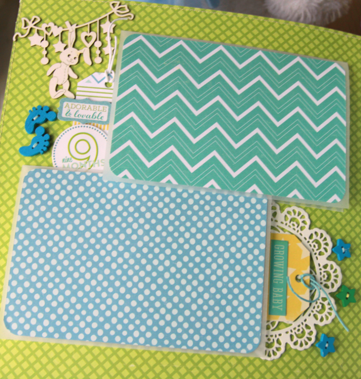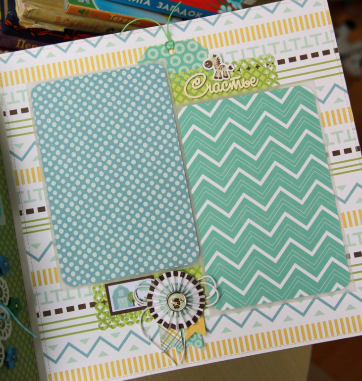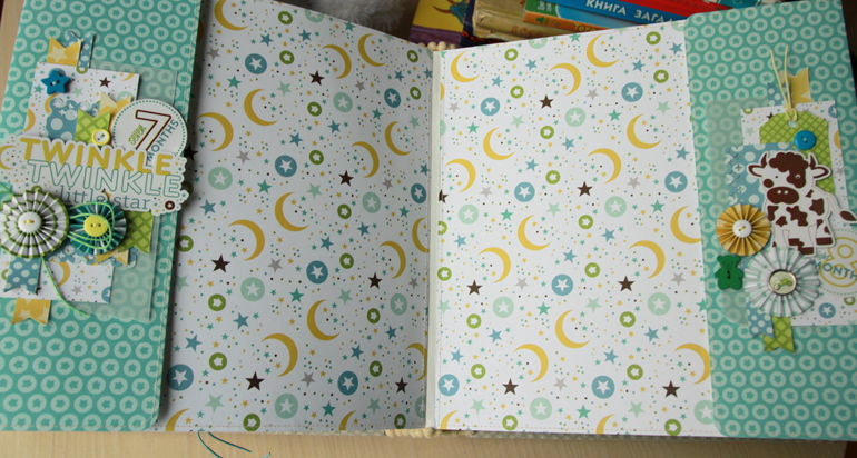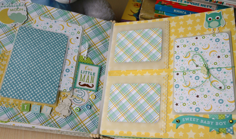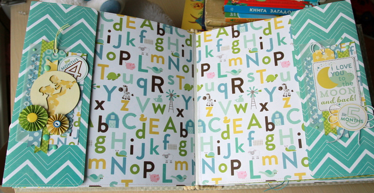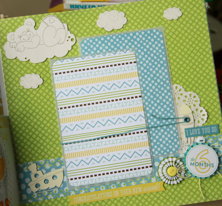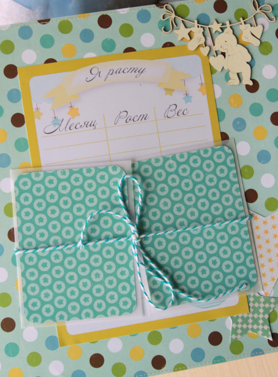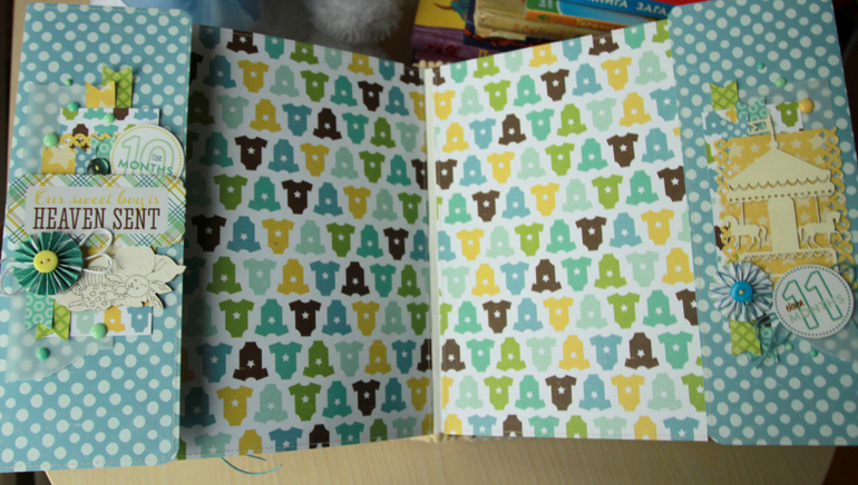 5 разворот о полугодовасии. Хозяин альбома любит мишек, поэтому их здесь много)
