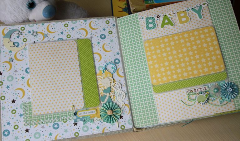 В альбоме 11 разворотов: 6 центральных разворотов и 5 разворотов, предназначенных для самостоятельного оформления мамочкой)