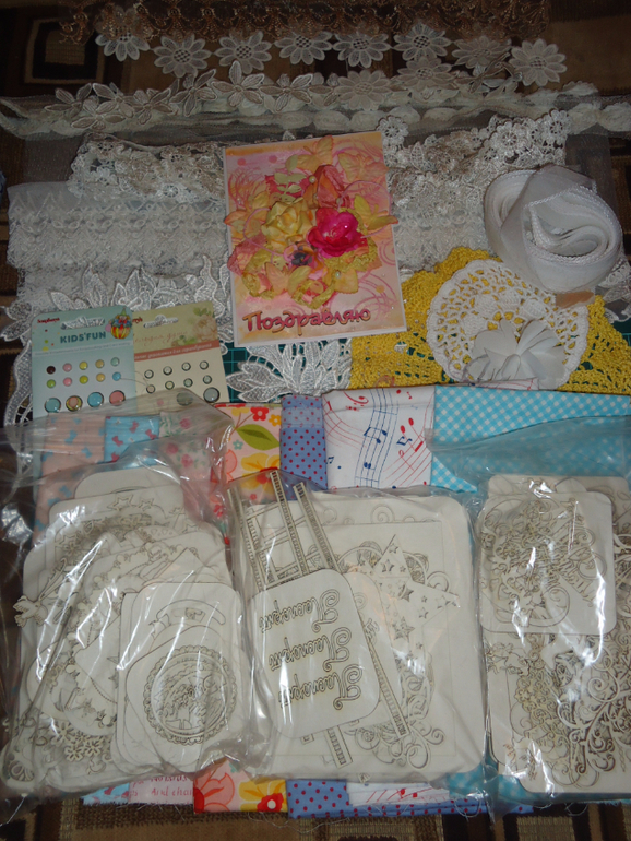 .Девочки это что-то!!! Сбылись все мои мечты-чипборд и кружево.Яна ты волшебница!!! Общий вид подарочков!!!!