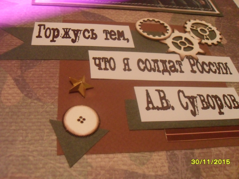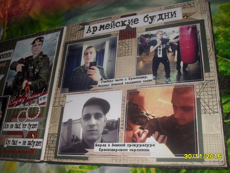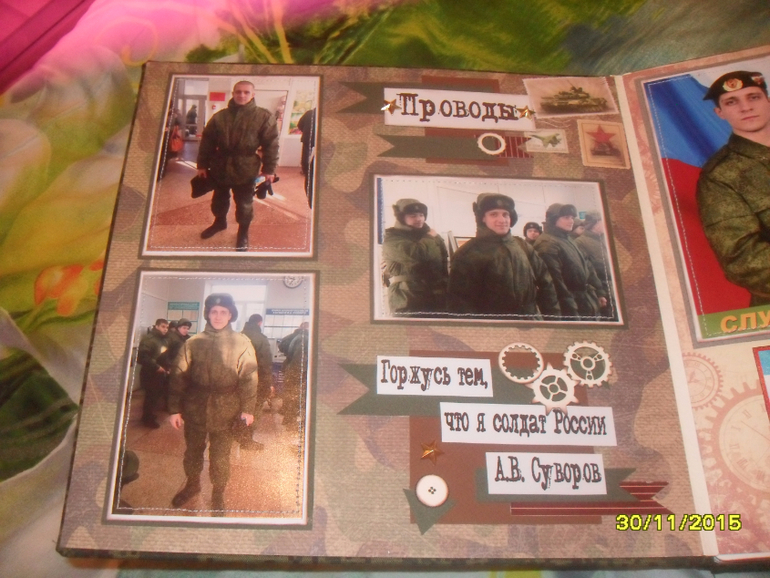 Огромное спасибо за положительные отзывы. Очень приятно. У меня уже на очереди ещё такой же дембельский альбом. Надеюсь второй альбом буду создавать быстрее.