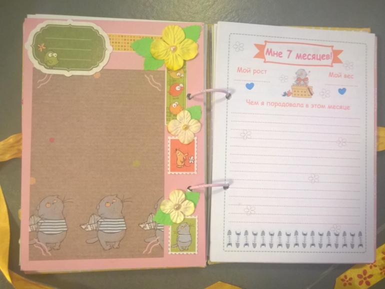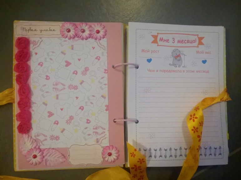 Каждая страничка рассказывает о этапах развития малышки и очень много страничек для фото. Вот совсем немного страничек: