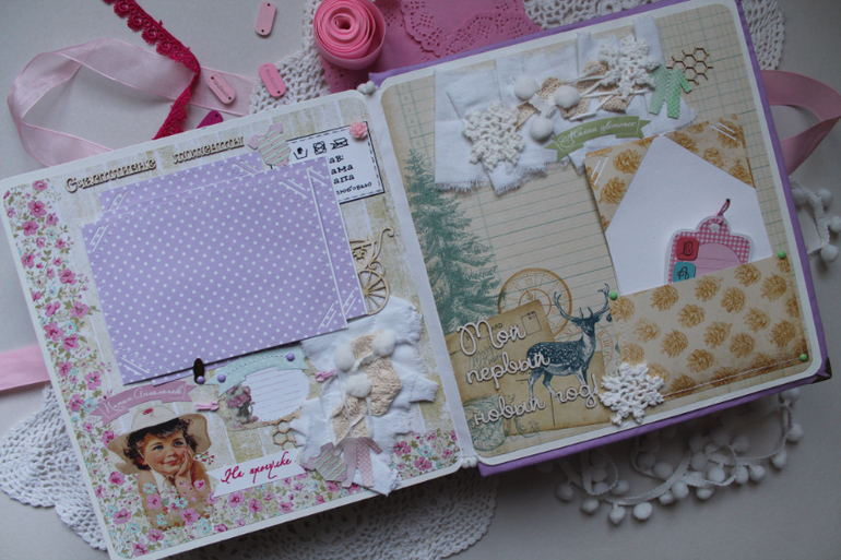 Формат альбома 23х25 см, 6 разворотов (12 страниц), ручной переплет,рассчитан на 75 фотографий,прошу к просмотру