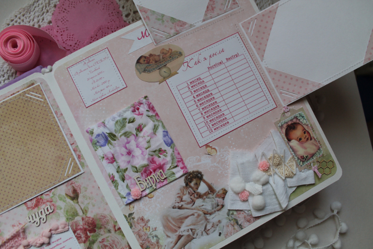 Альбомы ДетскиеПоследний зефирный альбомчик в уходящем 2015 году. В мягкой обложке из хлопка,содержит таблицы:рост-вес,мои зубки,достижения,кармашек для бирочки и конвертик для снимков УЗИ.