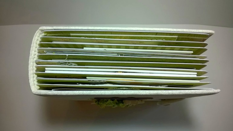 Уголки в переплете я скруглила, в основе картон плотностью 700 гр. Польская бумага. Красивая! Мне очень понравилась! В реале цвета нежнее, чем у меня получилось. Однако стоимость бумаги себя не оправдывает и не хватает карточек, хотя бы одного листика.