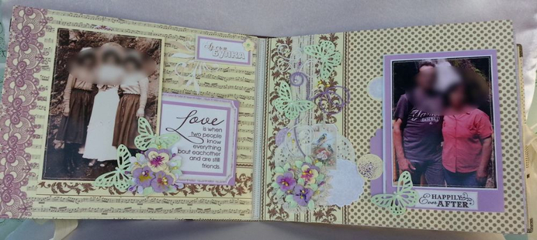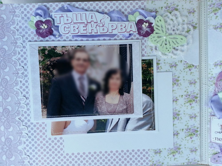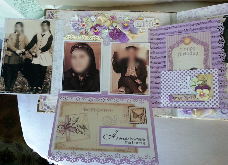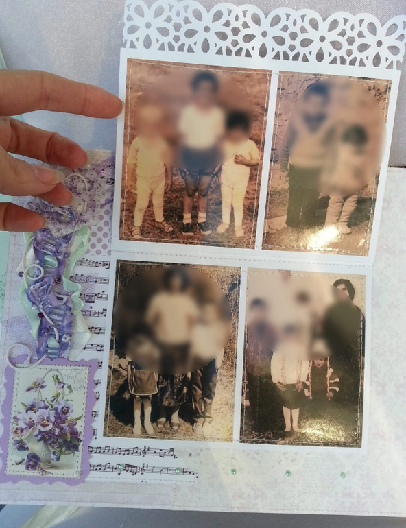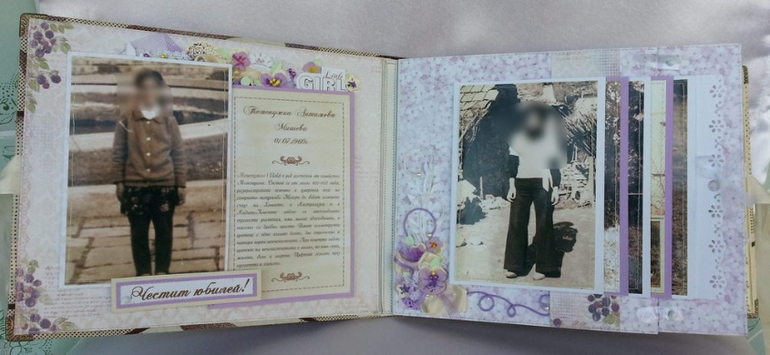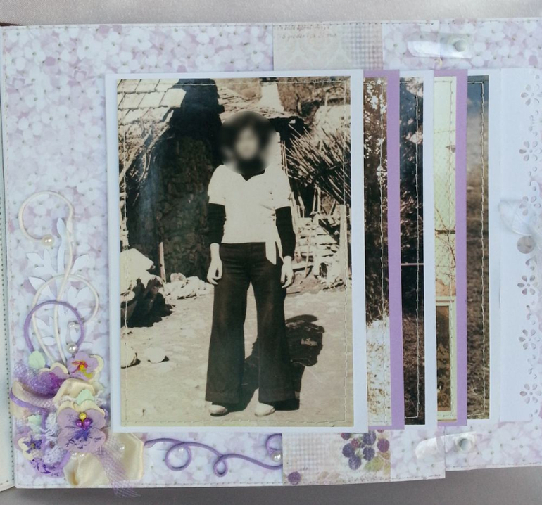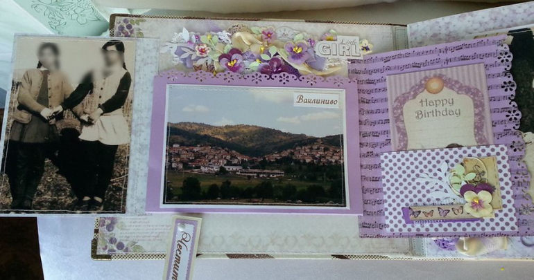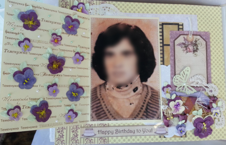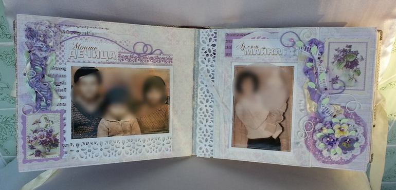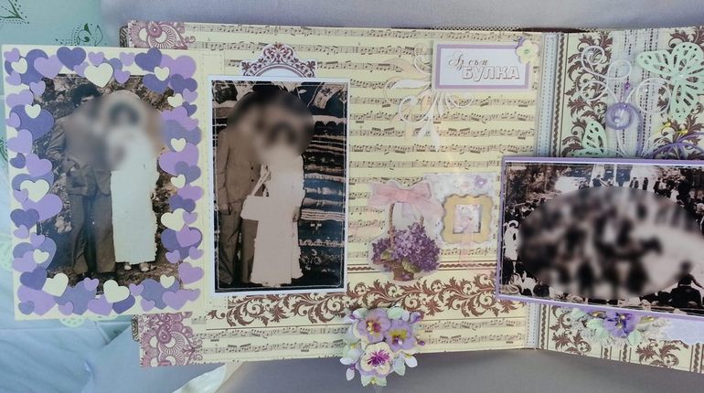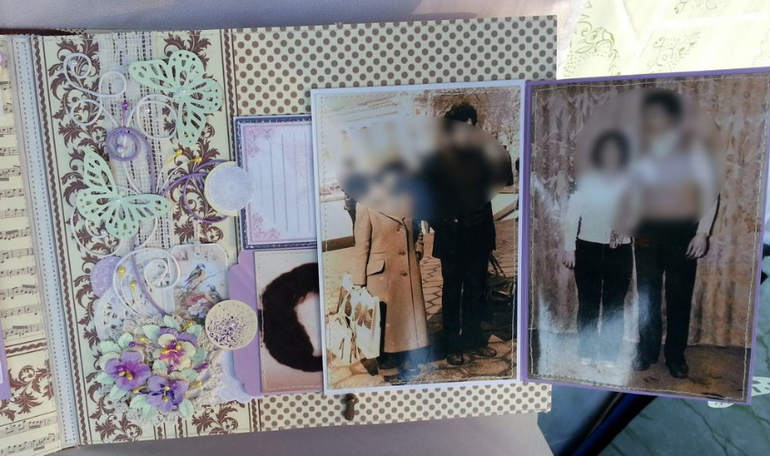 На первой странице - фотографии еще девчонкой, фото родного села, родители, и под фото матери спряталась фотография бабушки, надеюсь свекровь найдет это фото...