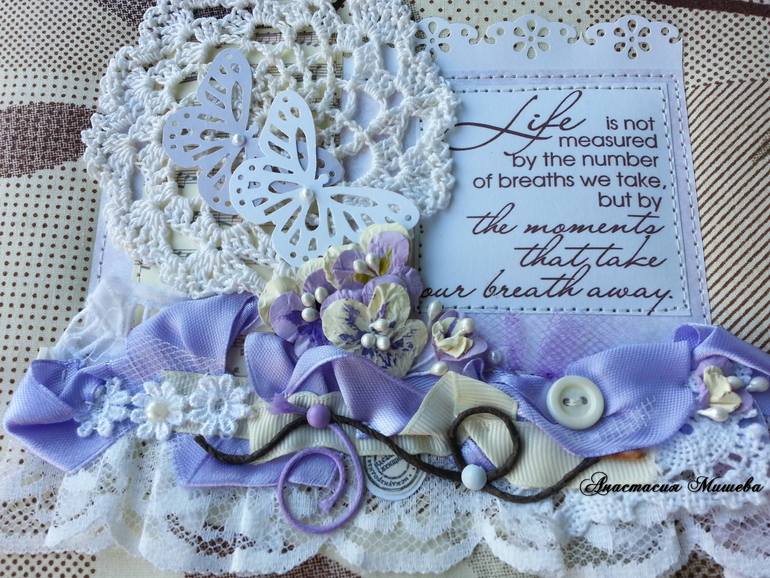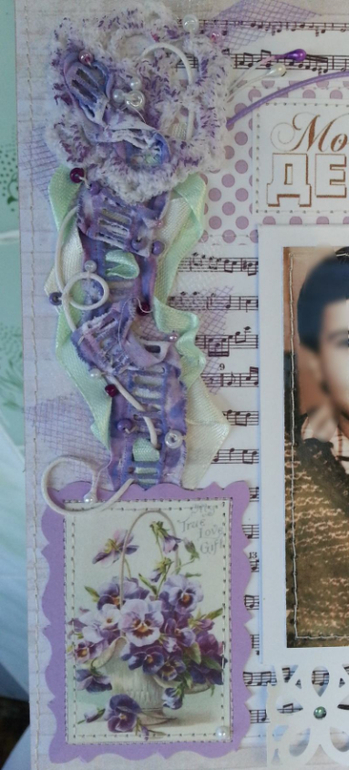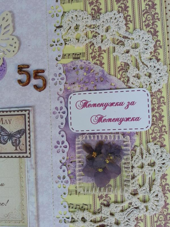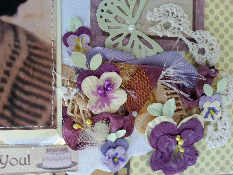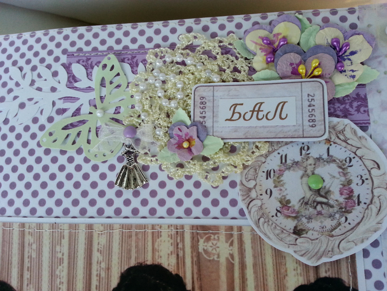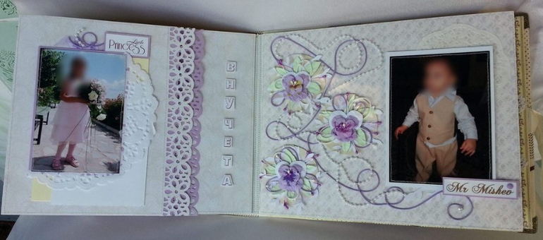 Детальки - салфеточки все вязала сама, фиалки засушила специально для альбома, и цветочки все делала сама...