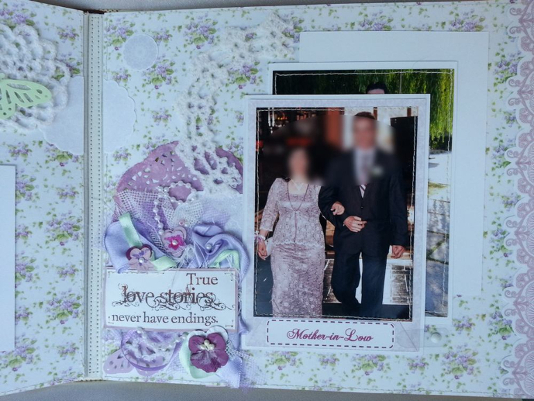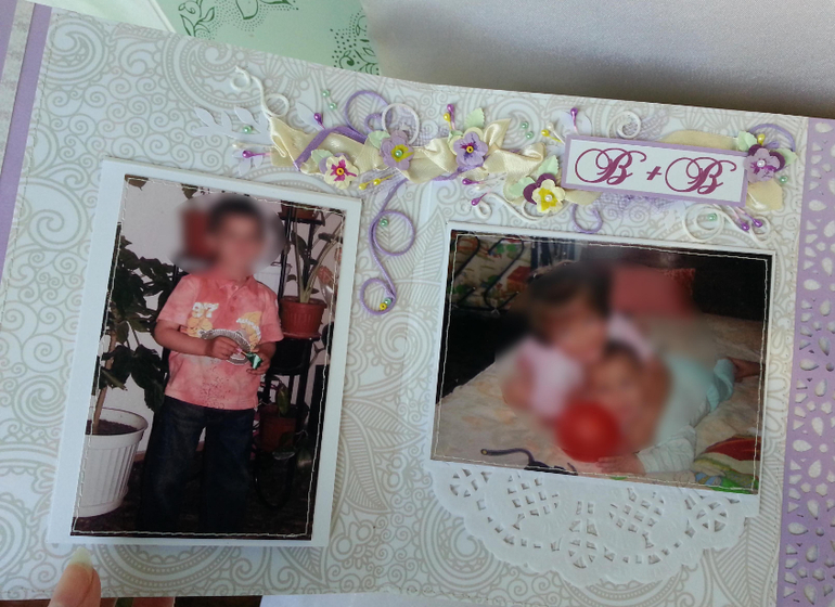 Дальше по хронологии - дети выросли и поженились... на каждую новоиспеченную семью по отдельному разворотику для горизонтальных и вертикальных фото, свои я уже вклеила, а девчонок мама сама вставит.