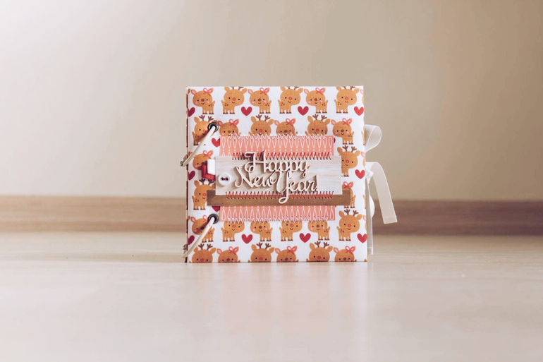 Альбом 13,5х13,5 см (Инстабук для фото полароид). Внутри 20 листов дизайнерского картона шоколадного цвета. Обложка натуальный хлопок, завязывается на киперную ленту.