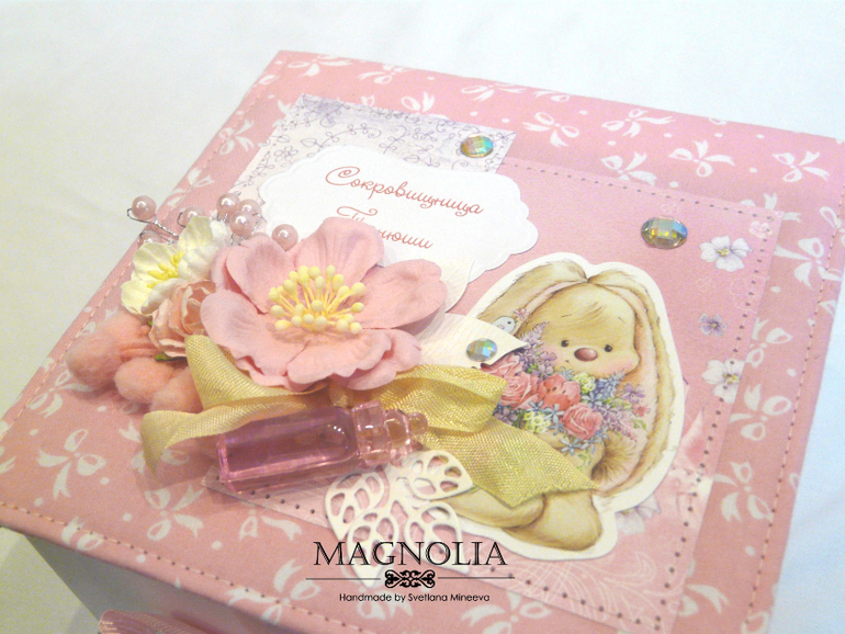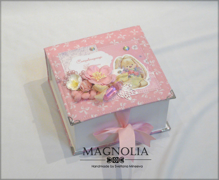 Коробки, шкатулки, комодыЭто маленькая сокровищница-шкатулка была сделана для маленькой девочки, использовала всеми любимых зайчиков М. Федотовой. Все-таки они бесподобны) Всегда удивляюсь и восхищаюсь талантом таких художников. В декоре использовала цветочки от магазина Бумажные радости, классные,очень мне нравятся