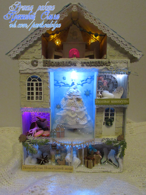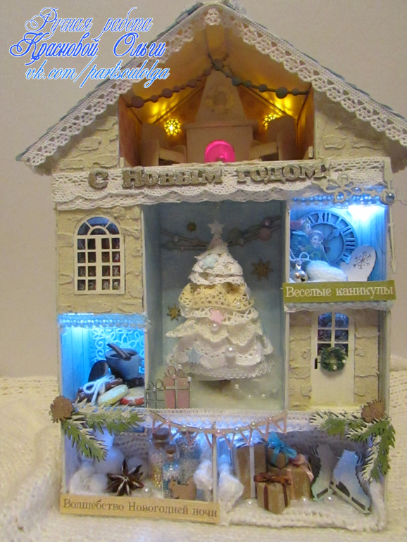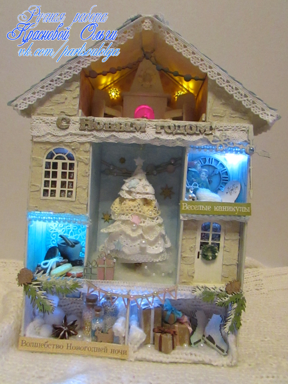 Заскрапить можно ВСЁ! (альтерскрап)О чем все мечтают под Новый год? Конечно же о сказке! Вот и наш домик воплощение настоящей новогодней сказки, маленького чуда, того, о чем мечтают все в новогодние каникулы!