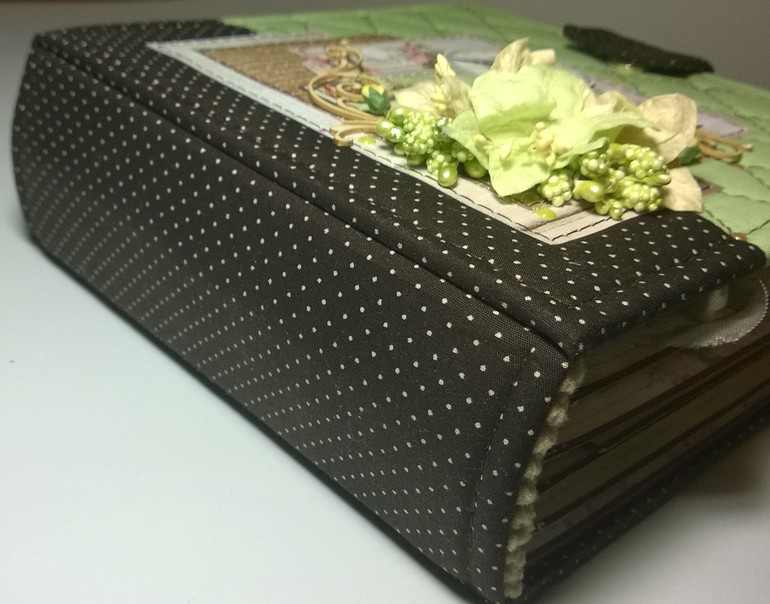 Из 10 страниц 6 пришиты со всех 4 сторон по периметру прямо к переплету! Ширина соединительных полосочек 1 см, на работу ушло 3 листа фотокартона 50:70 см (на последней странице даже чуть не хватило, пришлось брать темно-коричневый) и около 20 листов скрапбумаги.