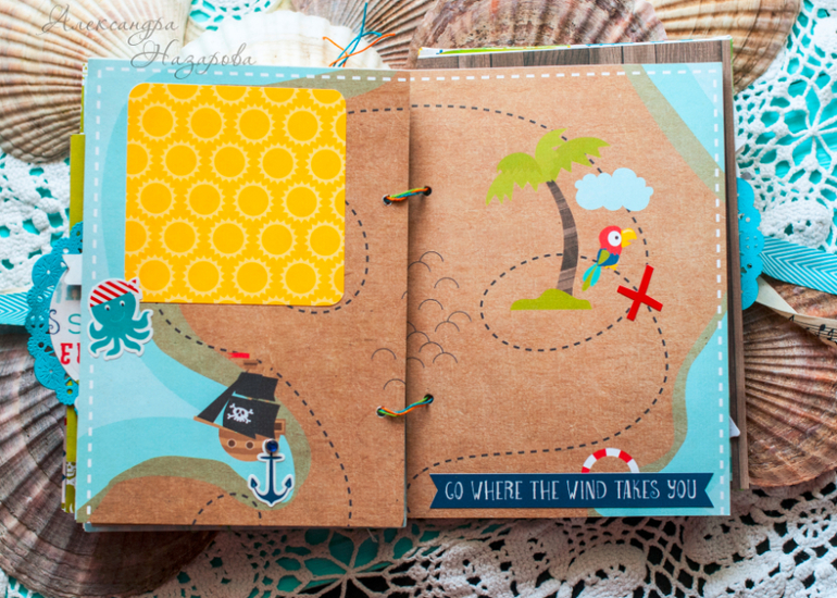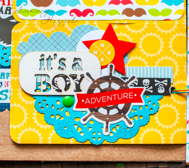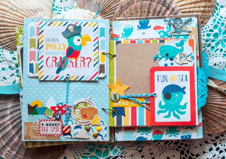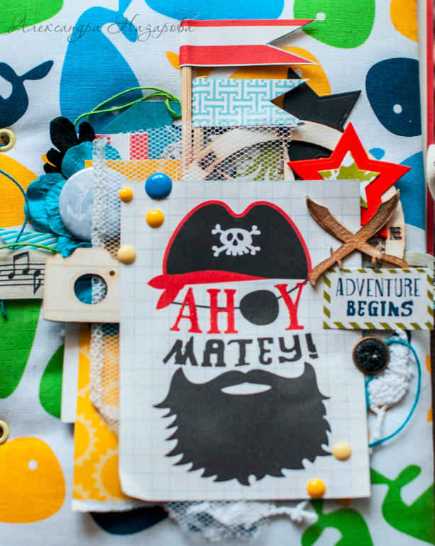 И сегодняшний альбом не исключение - пиратский набор бумаги от Echo park мой сынуля застолбил сразу! Отказать ему я конечно не смогла)))