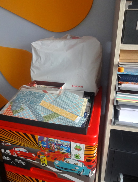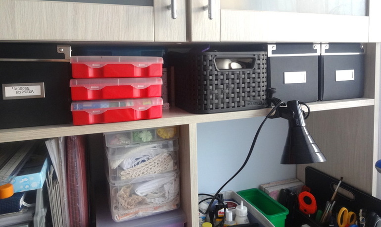 ПлАчу от скромности своего расположения, и каждый раз пытаюсь отвоевать себе еще хоть одну полочку. Сын, грозно позыркивая на моё "барахлишко" (его слова!), не сдается и не уступает мне больше ни сантиметра! Так что все мои инструменты и приспособления мобильны - надо шить - ставлю на стол машинку, надо резать - убираю машинку, достаю резак, надо биговать, убираю то, чем пользовалась ранее, достаю биговальню, и т.д. Ноутбук пристроили на подоконнике, больше просто негде!