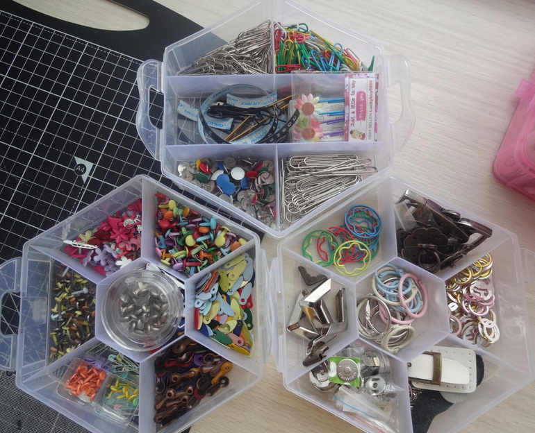 Металлические подвески, веточки, колоски, люверсы, бабочки - вобщем тут просто кармашки в лотке идеальные, поэтому такое странное соседство!
