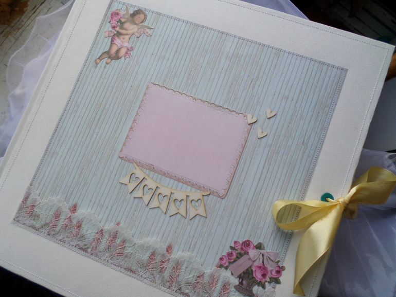 И к нему была еще сделана большущая коробочка,чтоб помимо альбома можно было сложить первые вещи мальчика и разную другую мелочь.