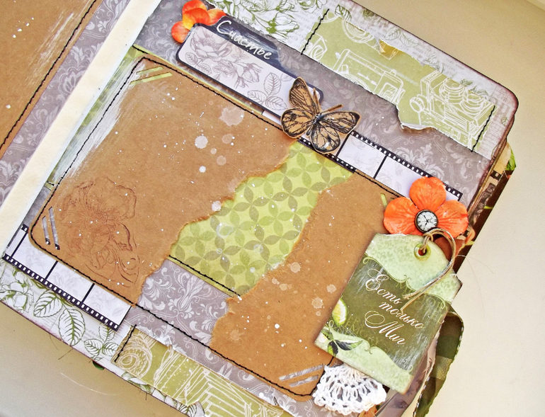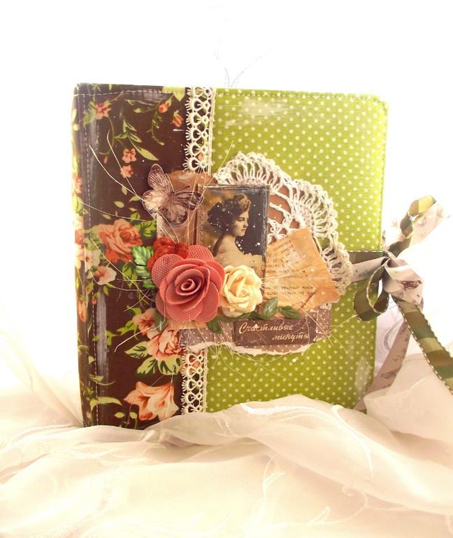 такой стильный! Очень понравился,ткани на обложке вообще классное сочетание. Вы давно занимаетесь скрапом?