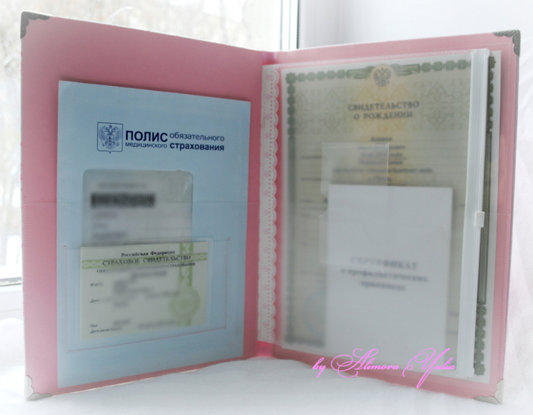 размер 21*28см, обложка обтянута хлопком, закрывается на резинку. Внутри 4 кармана для полиса, СНИЛСа, св-ва о рождении и прививочного сертификата. Так же вшита канцелярская папка на замочке зип-лок, туда поместится куча мелких бумажек, направления, справки и т.д.