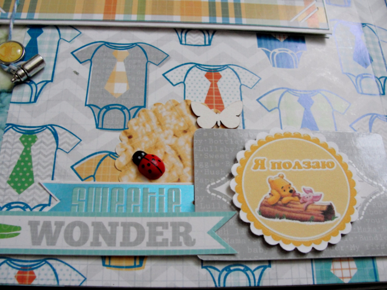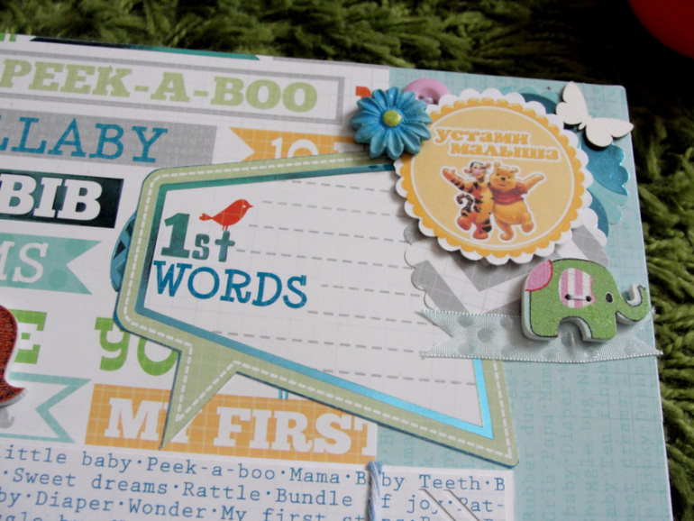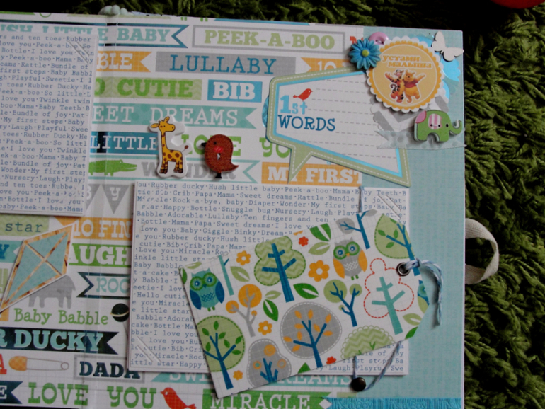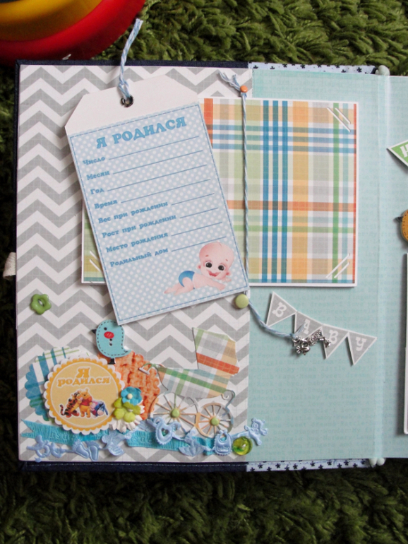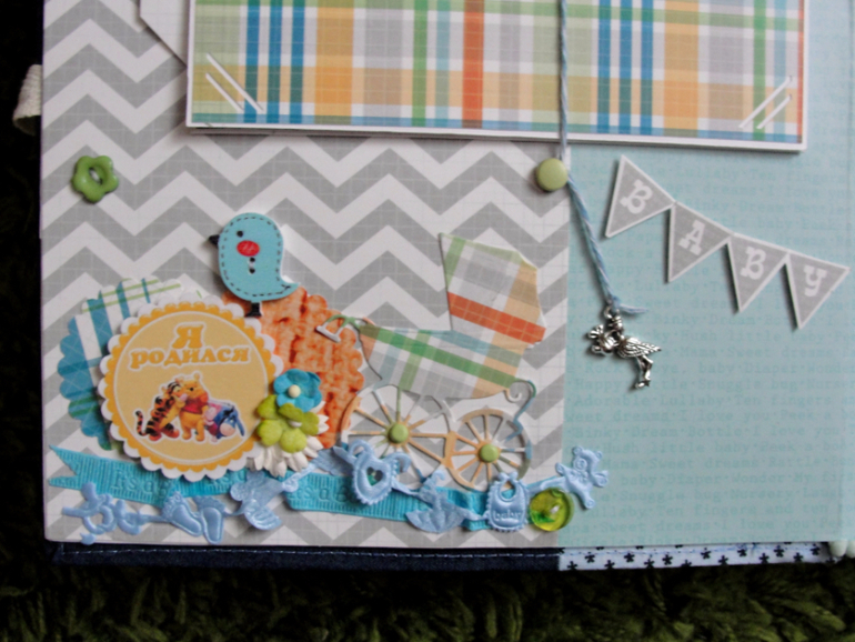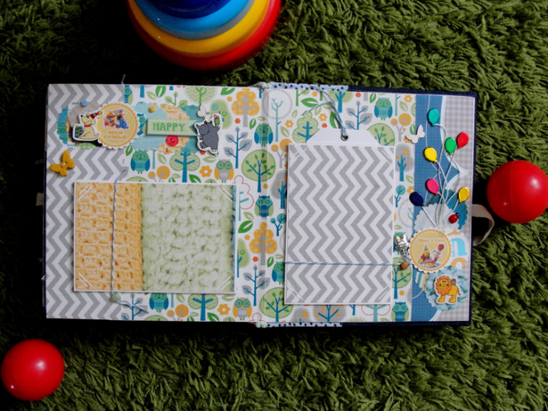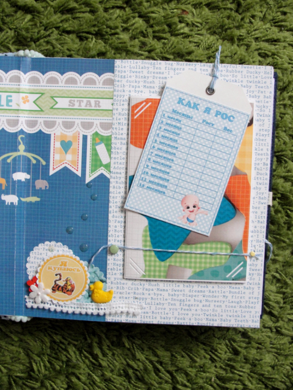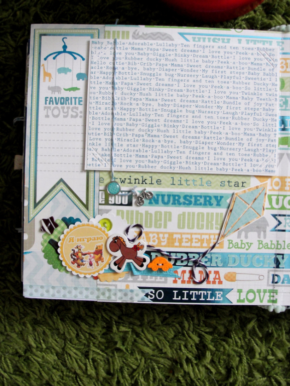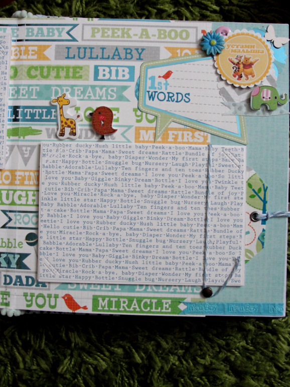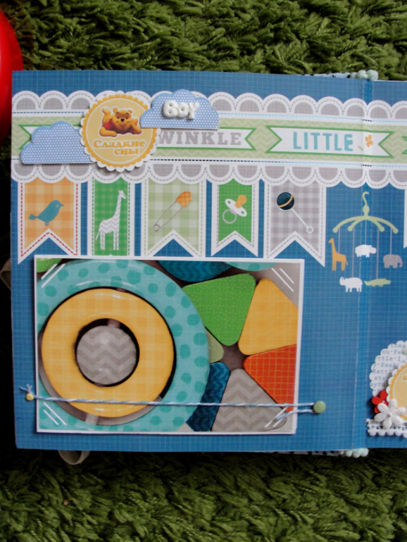 Ох, я когда этот набор бумаги увидела думала "Что вообще из него сделать-то можно?!" Особенно лист с памперсами убил. Но альбом получился чудесный, всего в меру, поздравляю!