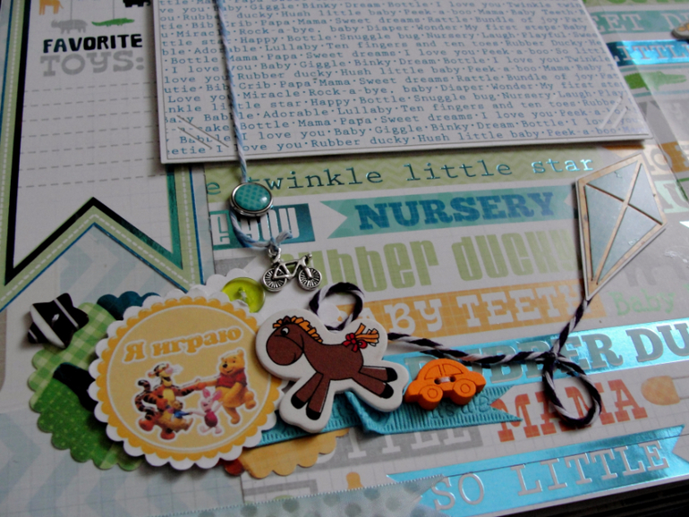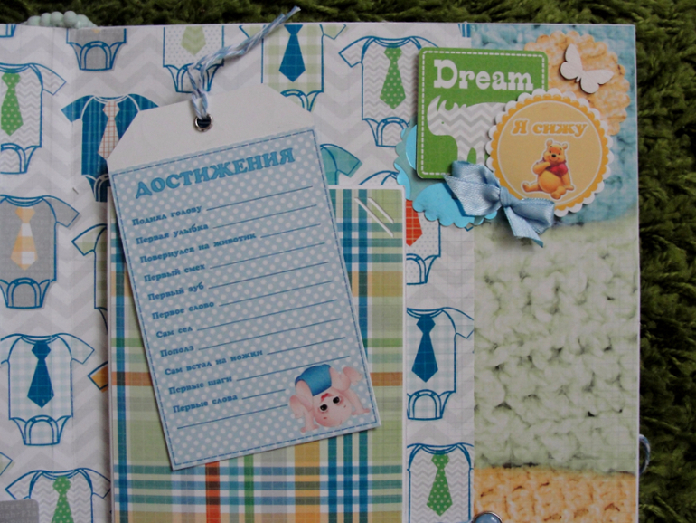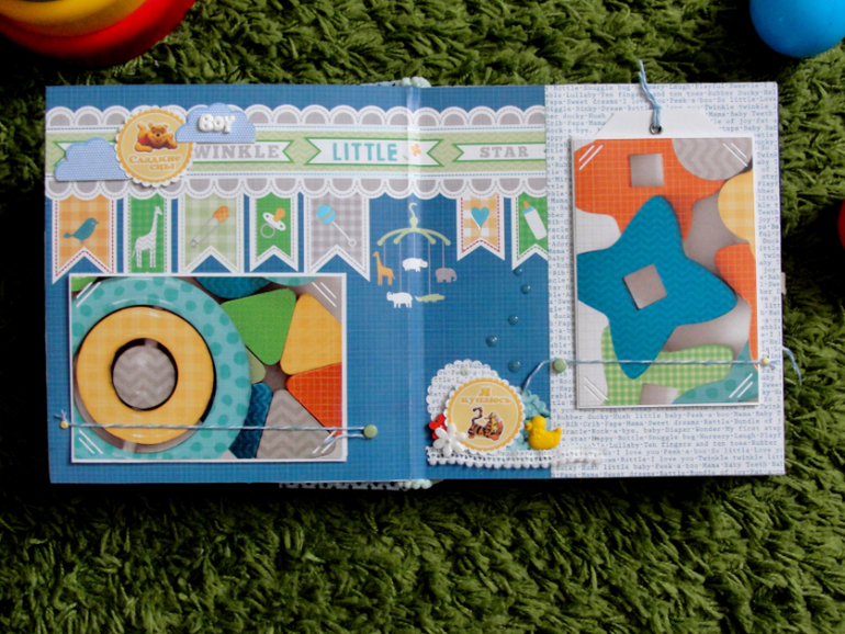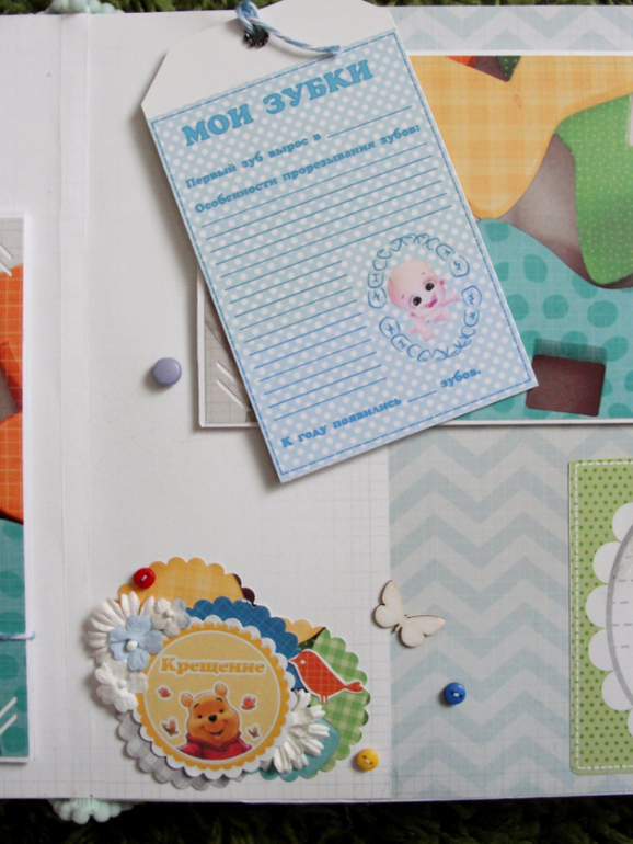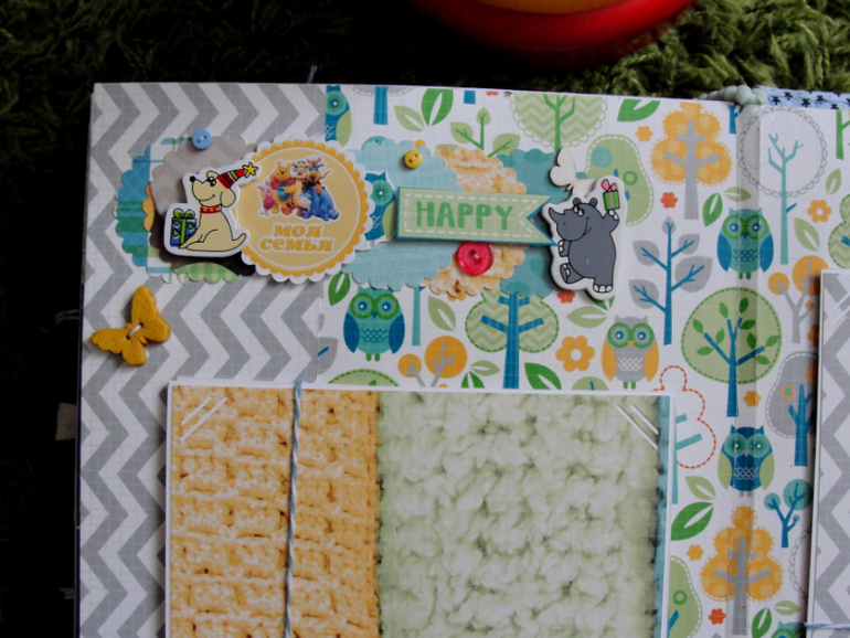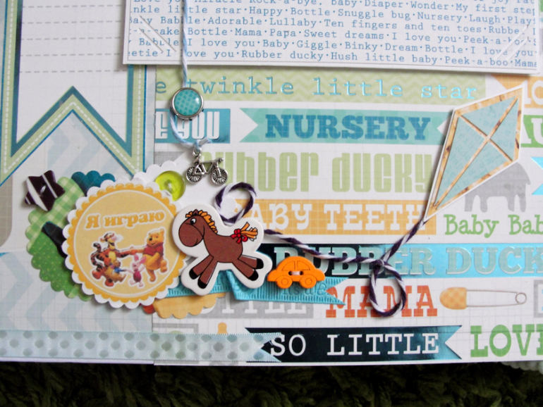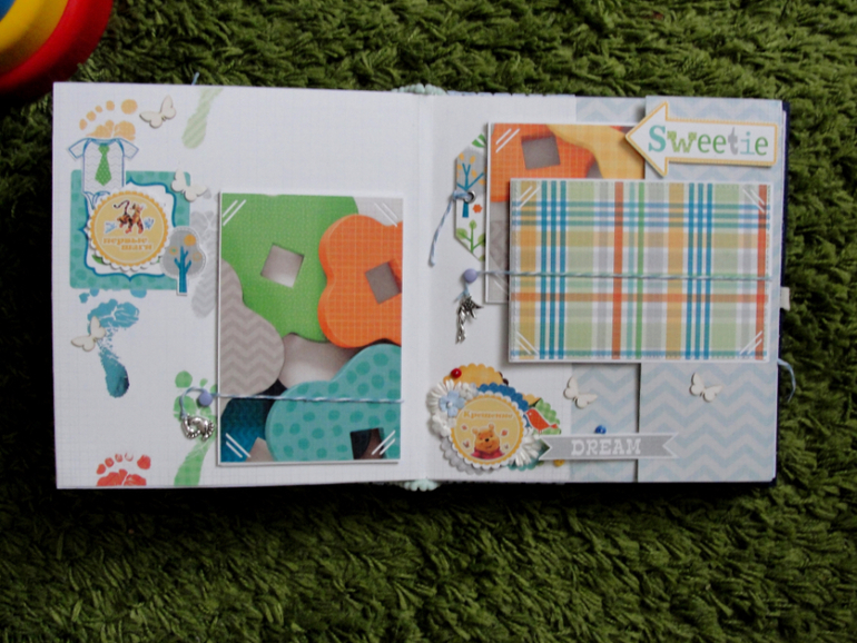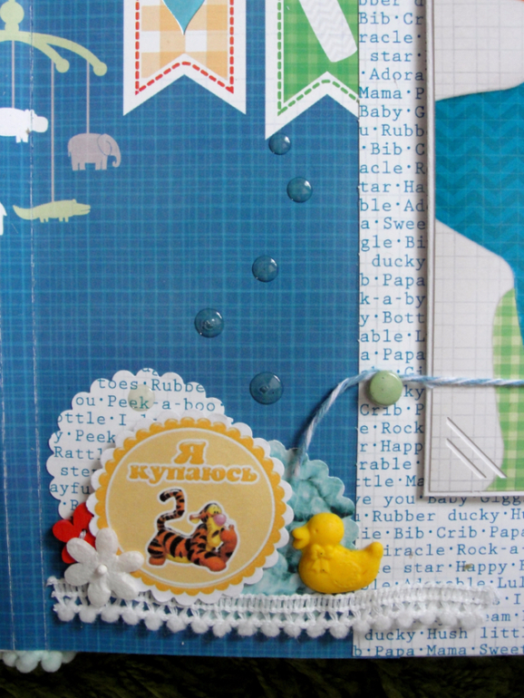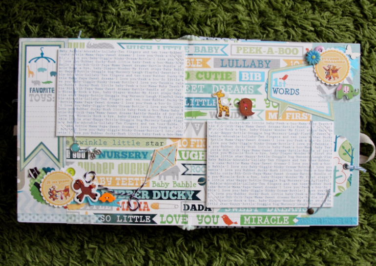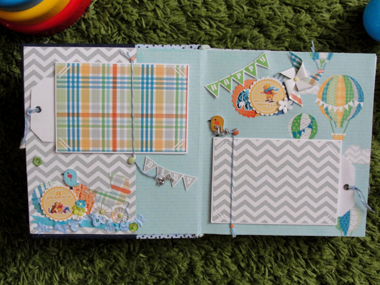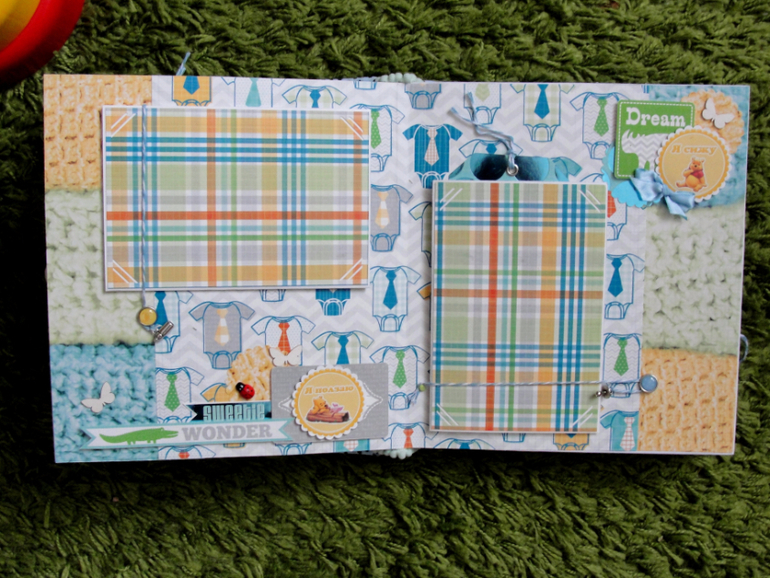 Ох, я когда этот набор бумаги увидела думала "Что вообще из него сделать-то можно?!" Особенно лист с памперсами убил. Но альбом получился чудесный, всего в меру, поздравляю!