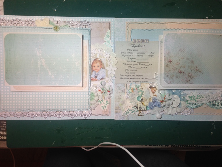 Первый разворот посвящен беременности и рождению малыша. Фото делала в ночи и с телефона - так что их качество хромает