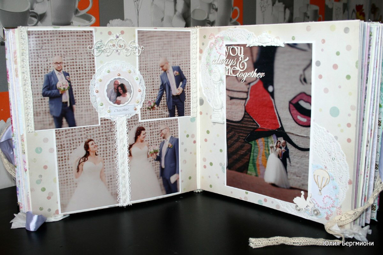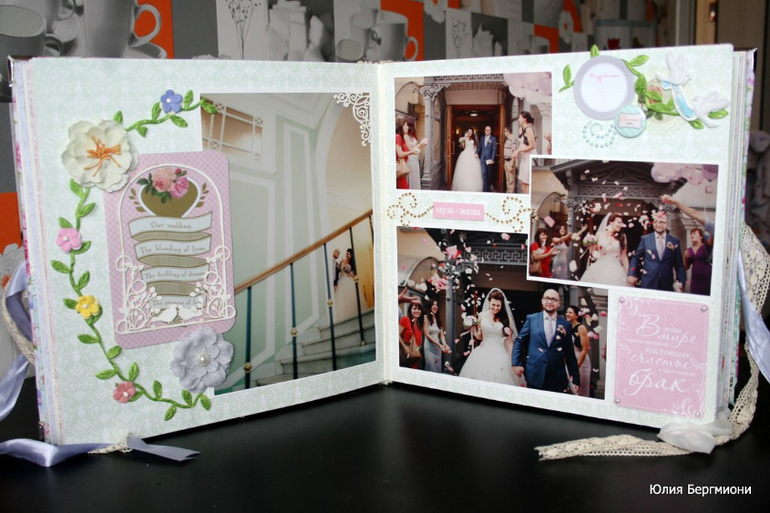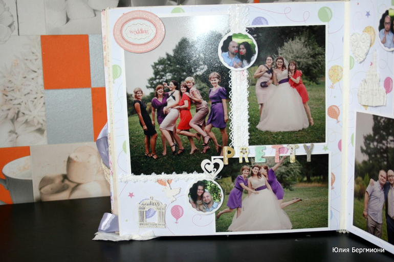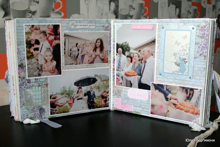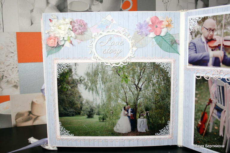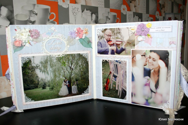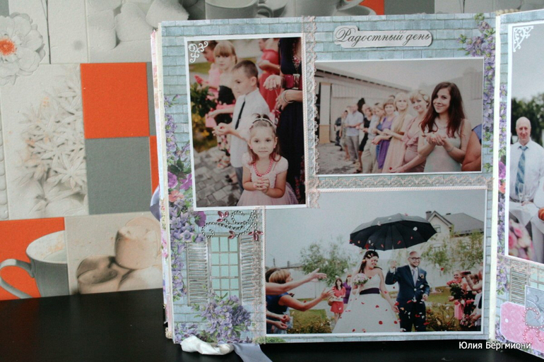 Использовала бумагу разных коллекций, преимущественно нашего производства, чтобы подходили к фото по стилистике и цвету