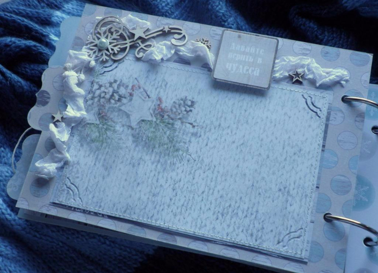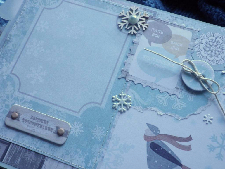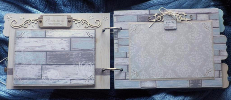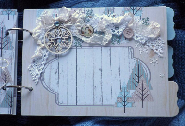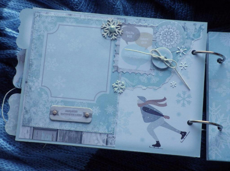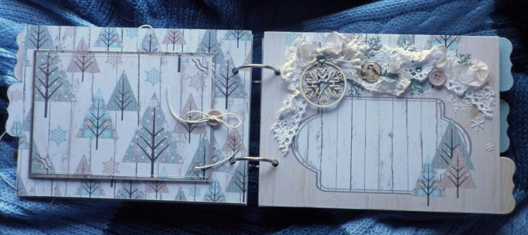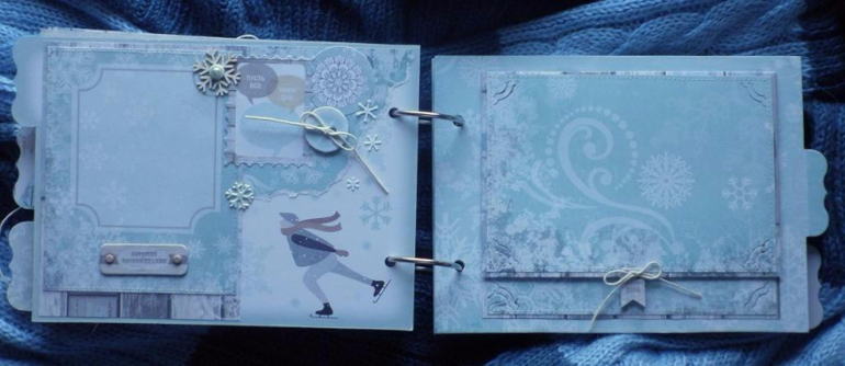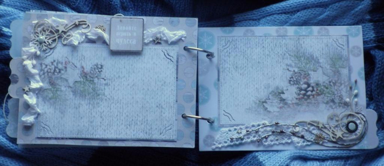 За основу взяла заготовку для мини-альбома "Зимняя прогулка" от Рукоделия,так же использовала бумагу и украшалочки из этой же коллекции,дополнив бумагой "Шале" от Флёр-Дизайн.