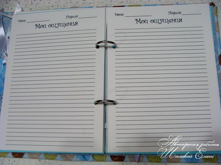 Дневник беременности станет отличным подарком для беременной девушки и надолго сохранит память об этом прекрасном и волшебном времени! Обложка обтянута 100% хлопком, который приятен на ощупь. Блокнот выполнен полностью вручную, крепление страниц на разъемных кольцах (можно переставлять или добавлять страницы).