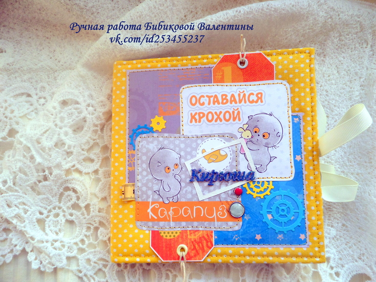 Мягкая хлопковая обложка. Завязки - репсовая лента.