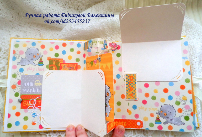 Я уже показывала вам свои миники, сделанные в подарок мамам (они же бабушки), с фотографиями внуков. А этот интерактивный миник я сделала в подарок своей сестре для фото ее сынульки и моего любимого пельмешки (племянника))) Сделала его на одном дыхании, по МК Светочки Лисицыной, буквально за несколько часов)) Не смотря на свой маленький размер (15х15 см и 3 разворота), он вмещает 20 фото 6х9 см. Ну вот люблю я, чтобы в альбоме было много фото)) Приглашаю посмотреть на то, что получилось)