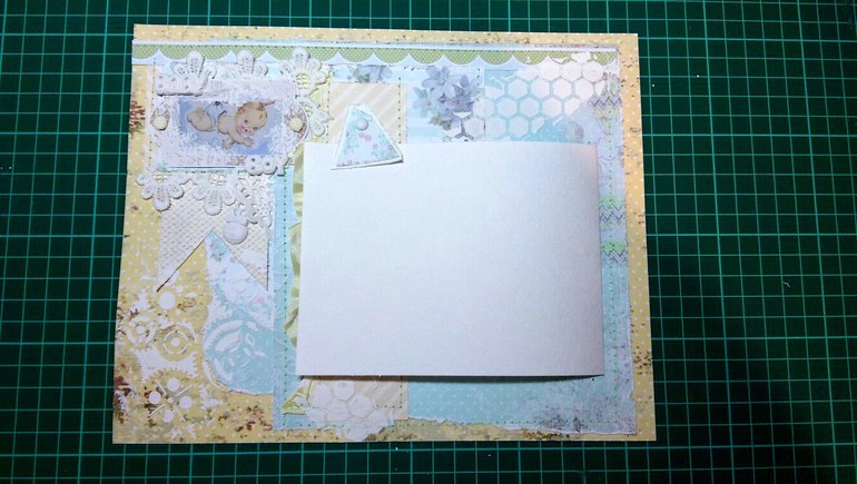 Здесь использовала несколько видов бумаги из разных наборов