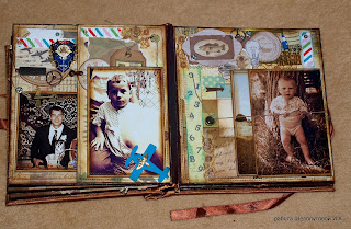 четвертый разворот средний и младший сын. идея была такая : первое на что падало внимание это какие они маленькие и при открывании секретиков какие они уже большие