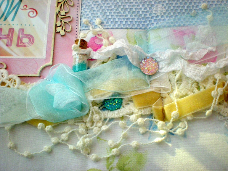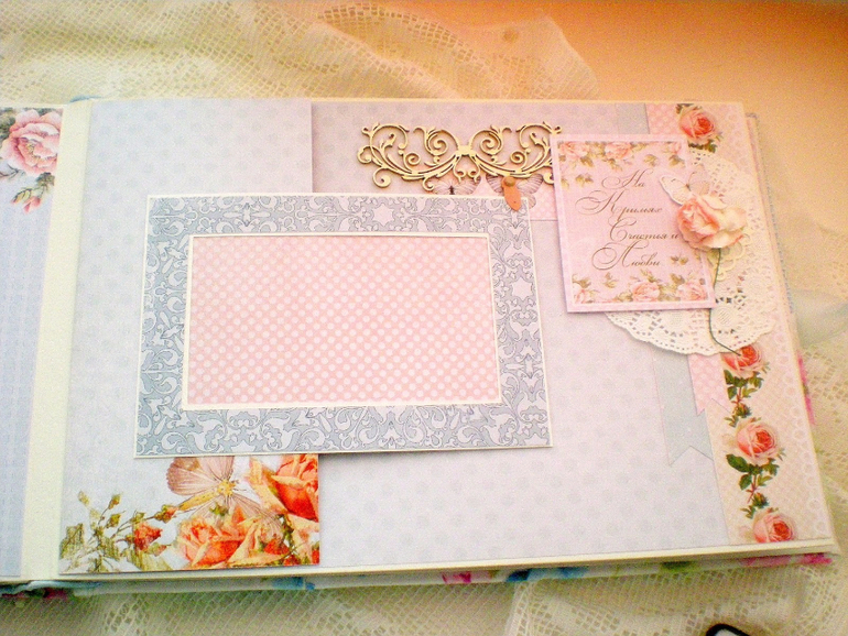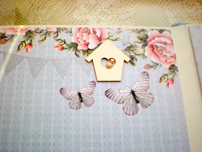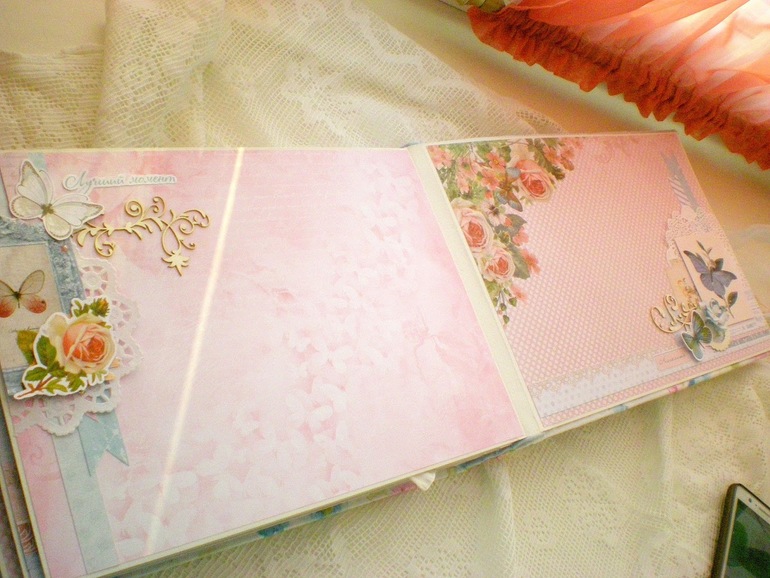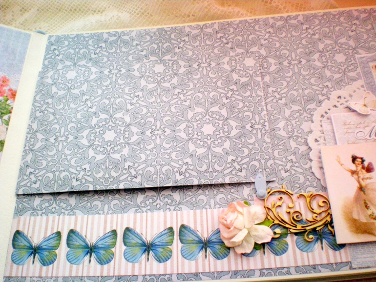 Между последней страничкой и задней обложкой сделан вместительный карман для больших фотографий, писем-записочек и прочих памятных мелочей.