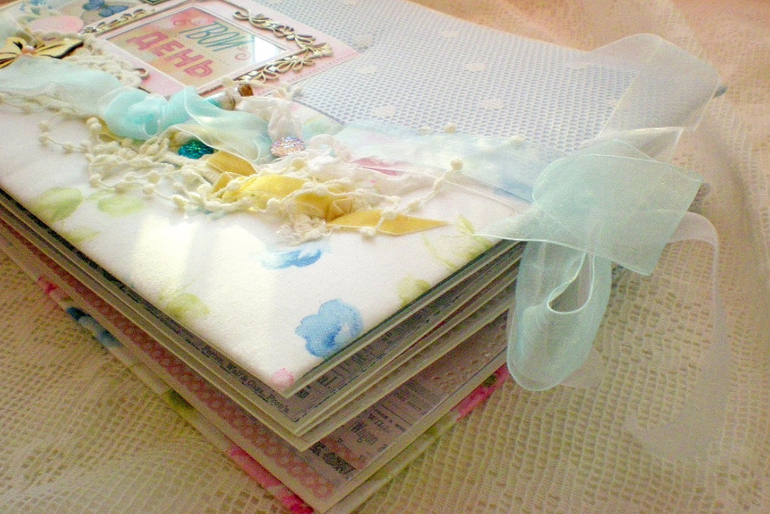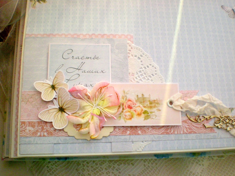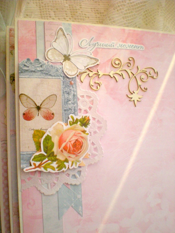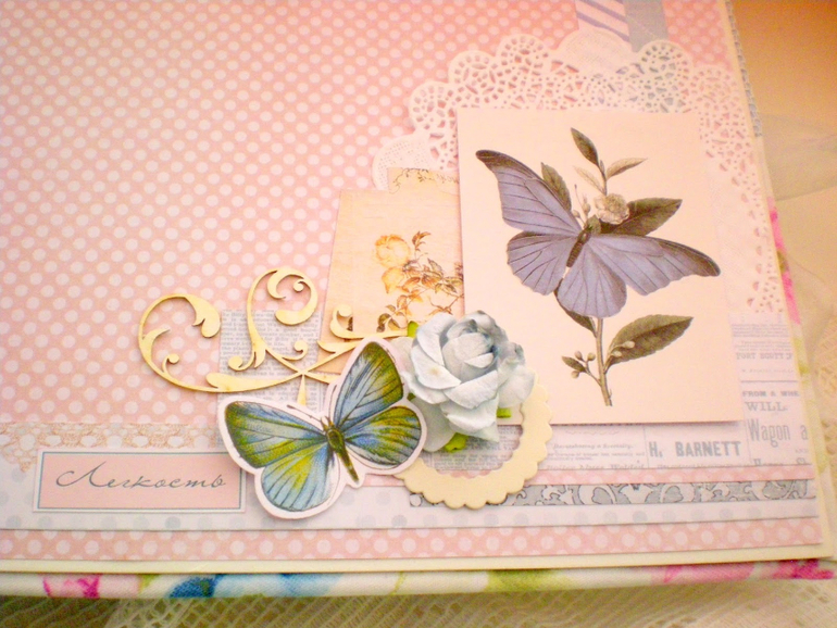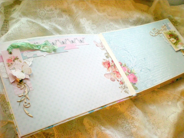 Хочу показать альбом, который был сделан для 13-летней девочки. Мама заказала в подарок альбом и блокнот. Пожелания от мамы были: кружево, бабочки, воздушность. В остальном полная свобода. Люблю такие заказы, вдохновение включается сразу на полную мощь.