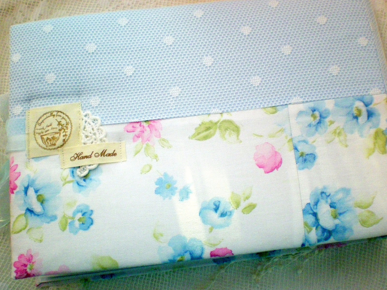 Обложка мягкая тканевая на синтепоне, из нескольких видов хлопка и тюля. В рамочку на обложке можно вставить фотографию.