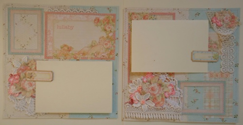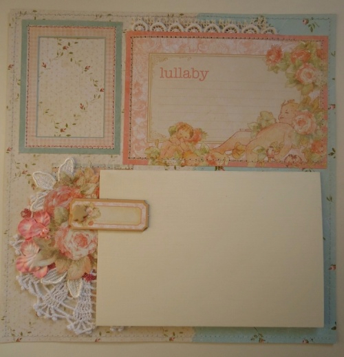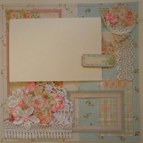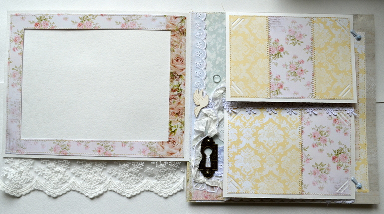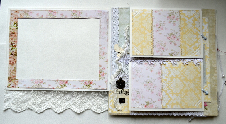 Итак вот мой разворот. Из ОЭ - рамочки ,бисер и "имитация вышивки"-это белые цветочки.
