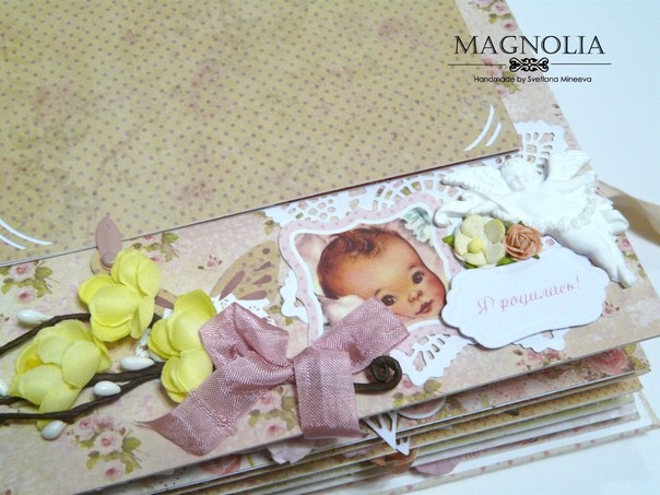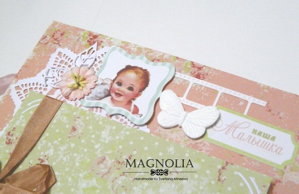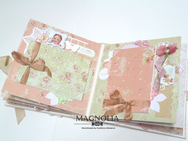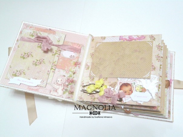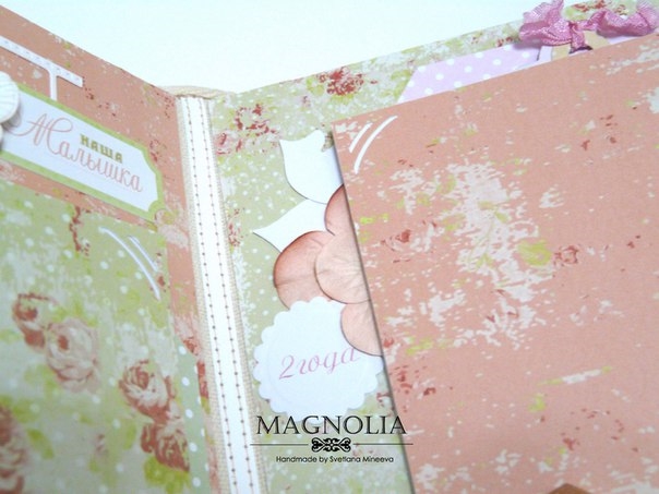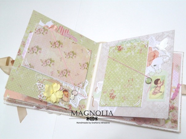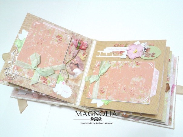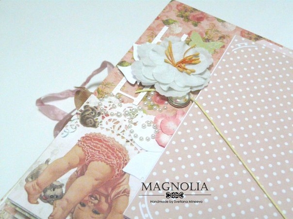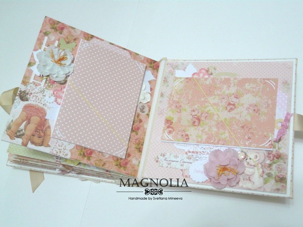 В этом посте покажу альбомчик для девочки из бумаги Карамель. Еще попозже, а может и сегодня, выложу такой же, но для мальчика (из бумаги скрапмира Корица). Оба альбома из одного заказа для братика и сестрички