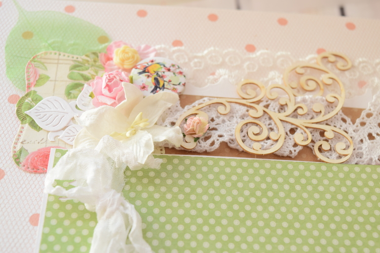Первый разворот: покорил меня этот "деревянный" лист с цветами, начала с него)