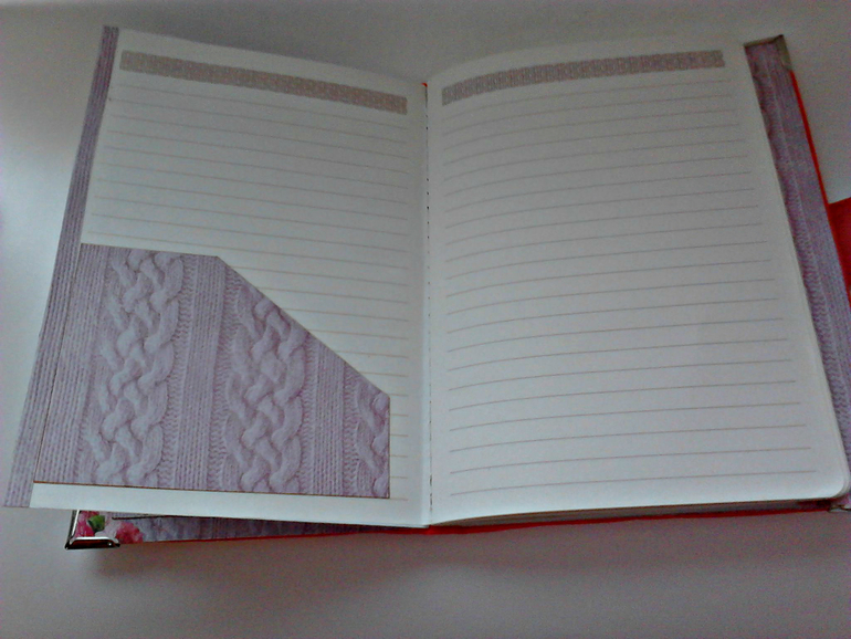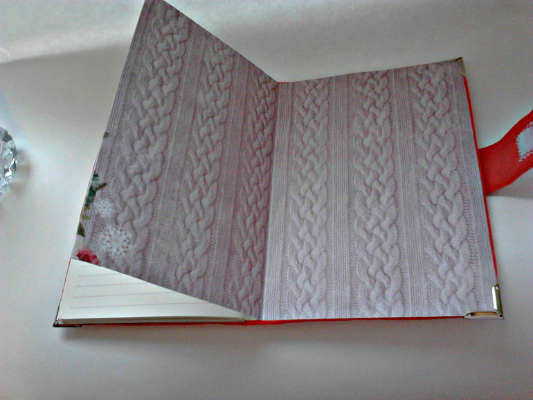 Размер блокнотика 15*21 на 50 страничек, закрывается на липучки и конечно же уголочки защищены металлическими. Вот такой вязаный и зимний форзац. Есть кармашек для важных записей, прострочен для надежности.