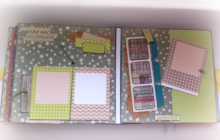 А вот и сам альбомчик.Первый разворот на 6 фото + тэг для записи в потайном кармашке.