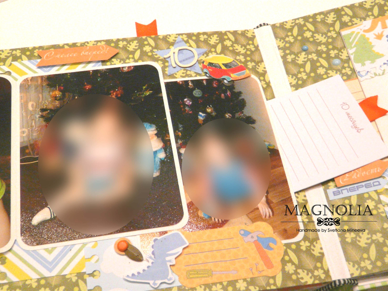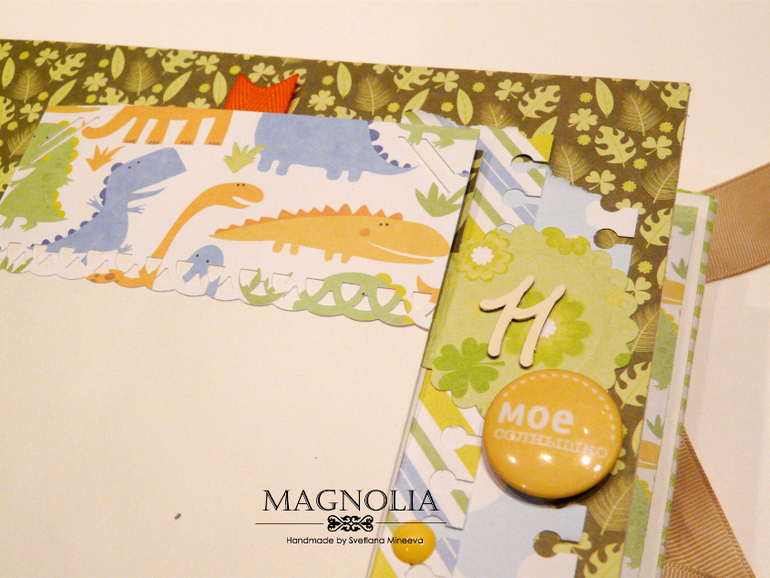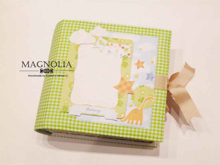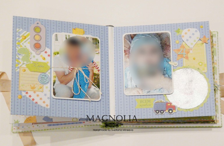 Сначала по альбомчику. Формат альбома 20*20 см, 9 разворотов (18 страниц), вмещает в себя 76 фото разного формата. Переплет по МК Е. Виноградовой. Завязывается на репсовые ленты, обложка обтянута натур. хлопком