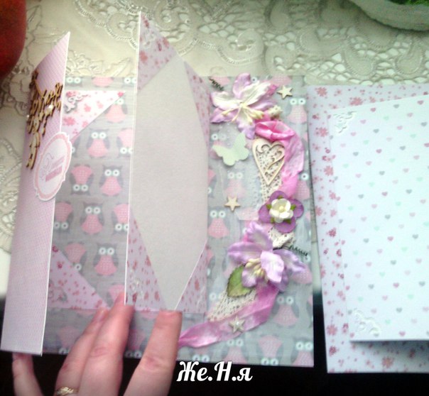 Кармашки на внешней раскладушке - это для тегов. Как на 2-ом развороте, с поздравлениями. Тэги в процессе))
