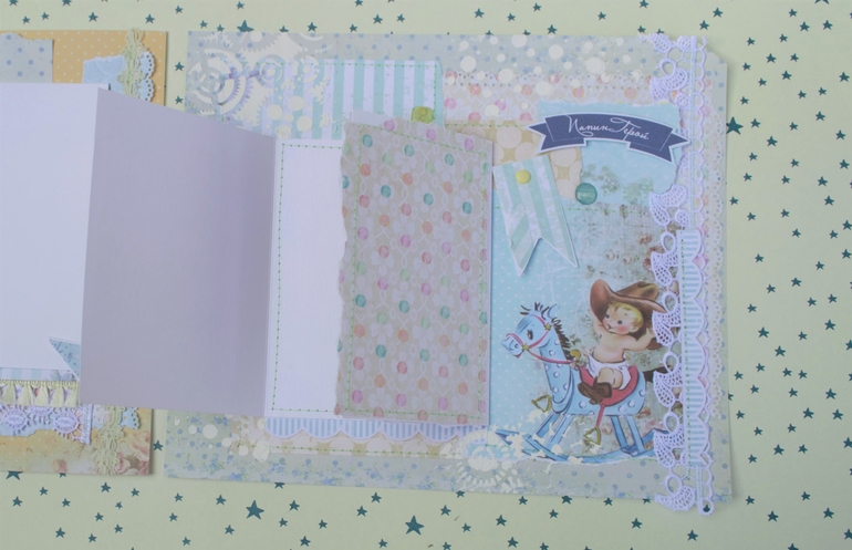 А здесь по два кармашка для карточек с фото. Они тоже еще в процессе) но ничего особенного не планирую, самые простые будут.