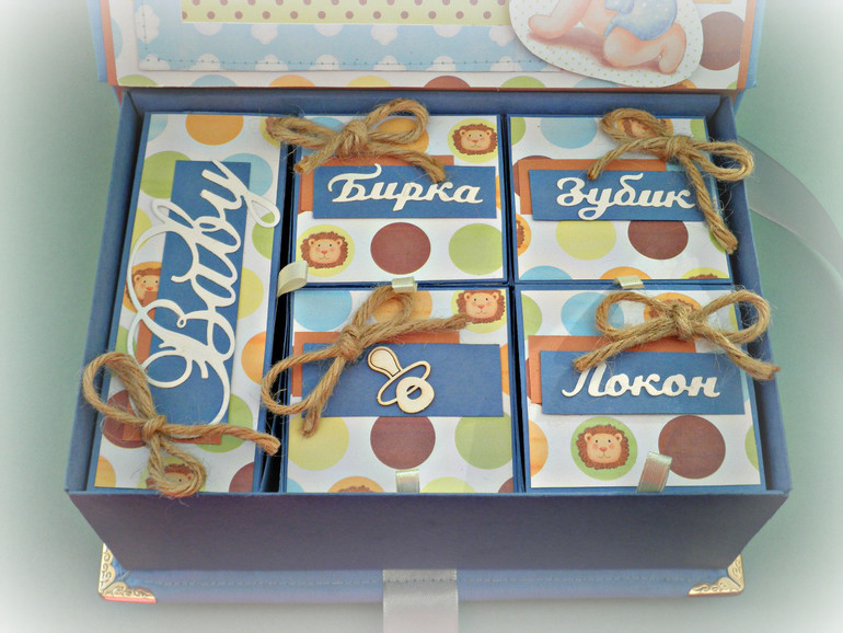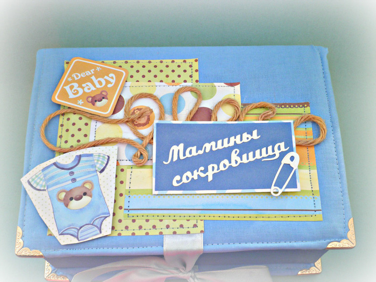 Коробки, шкатулки, комодыЗдравствуйте,хочу показать Вам очередную шкатулку Мамины сокровища,в этот раз для мальчика с очаровательными львятами. Размер 15*21*7,в набор входит 5 коробочек для бирки,соски,локона,зубика и большая коробочка важных мелочей + конвертик для теста,также фоторамка для фото 9*13,кармашек, большой тэг для записей. Все внутренние коробочки оснащены фирменными текстильными матиками + текстильные мешочки для локона и зубика.