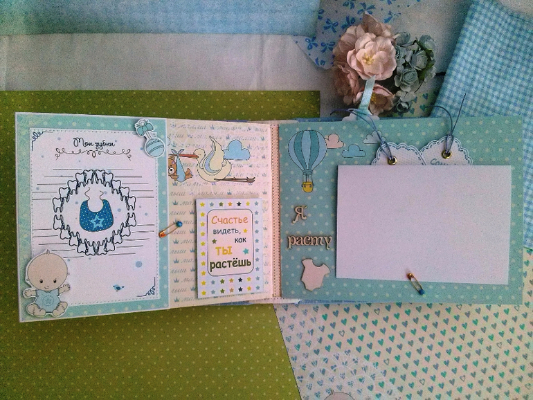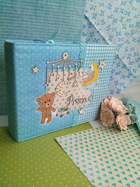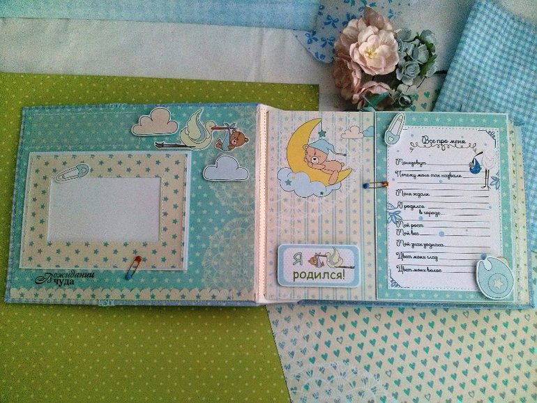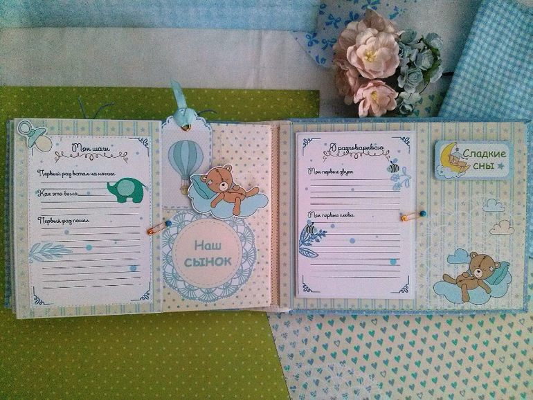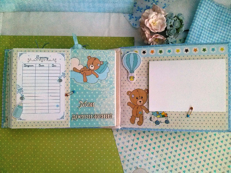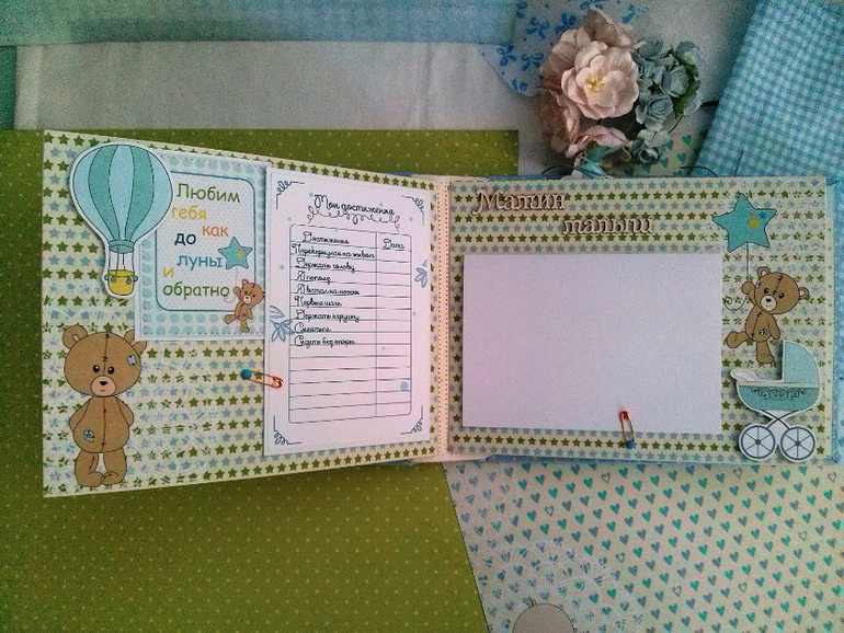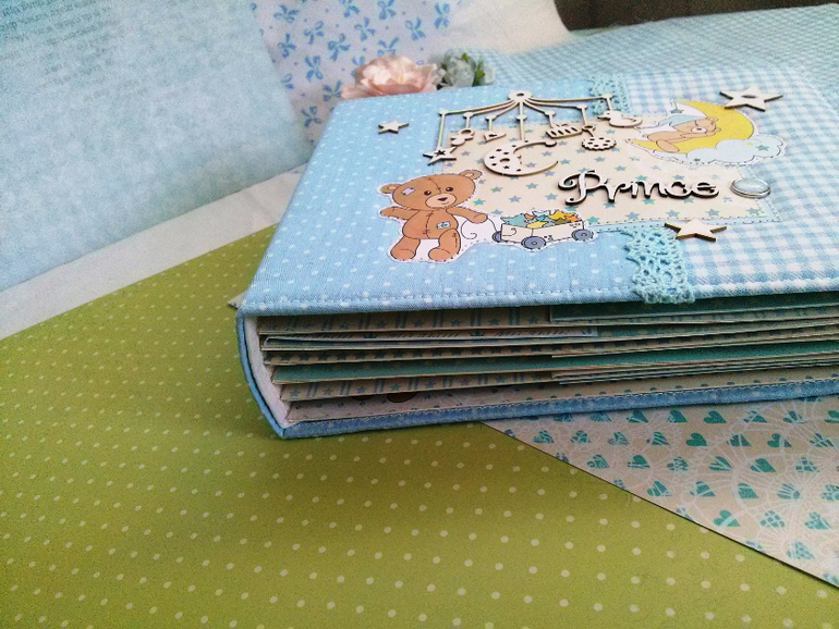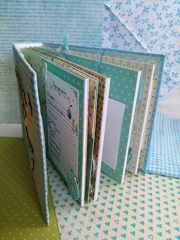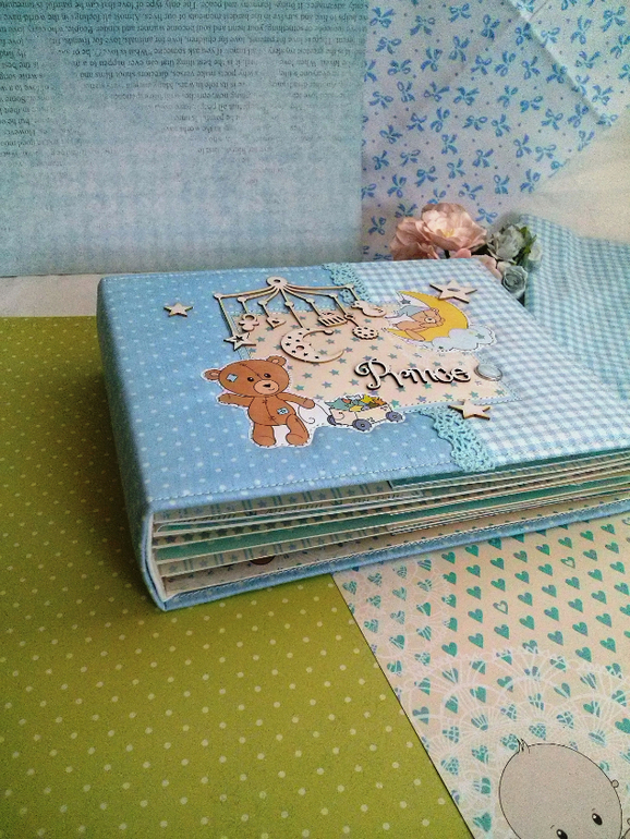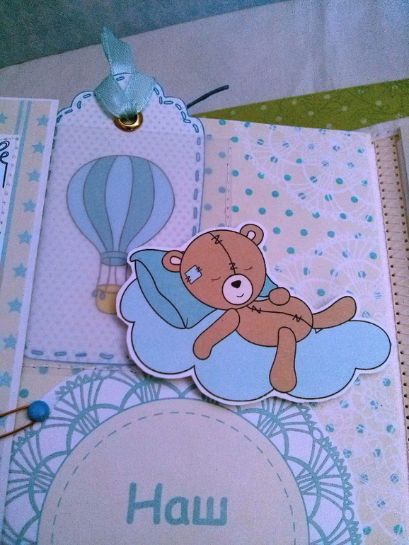 Альбомы ДетскиеПривет всем.На днях сделала небольшой альбомчик для мальчика. Размером 15 на 20 см, теперь это мой самый любимый размерчик. Шесть разворотов, вмещает 35 фото 9 на 13 см. Есть местечко для теста, конвертик для бирочки, а также много карточек для заполнения. Бумага Мoona design мне очень понравилась, ушел полный набор , остался только один лист и куча мишек. Вобщем смотрите сами, только качество фото оставляют желать лучшего. Мои 8 пикселей на телефоне