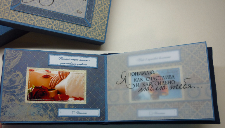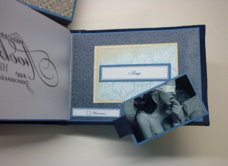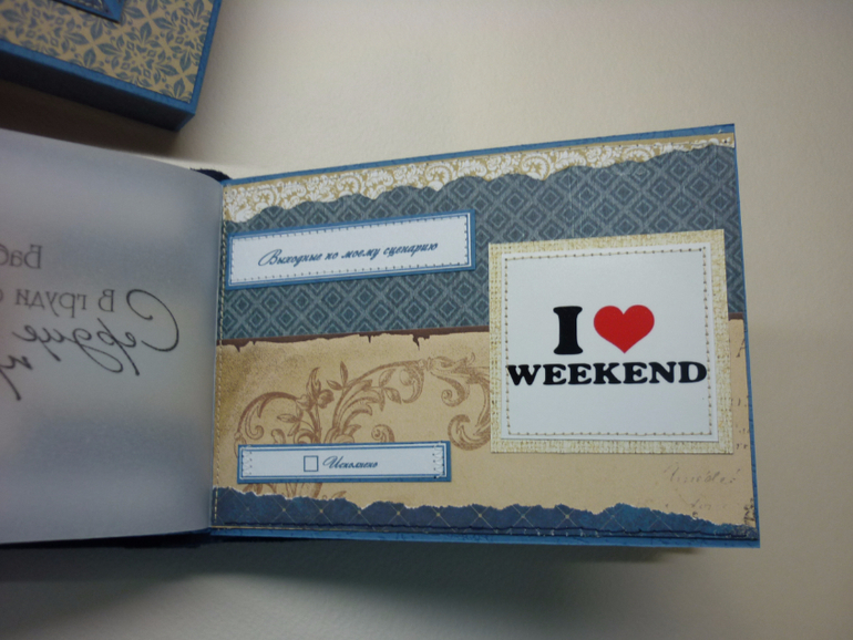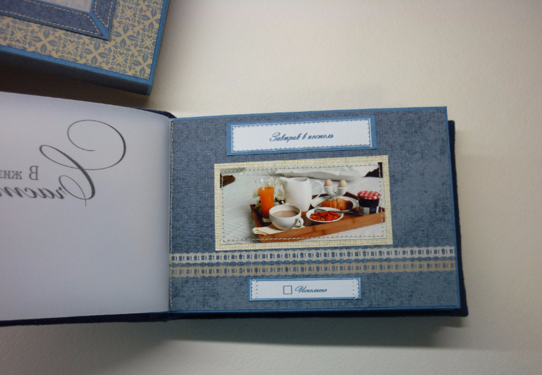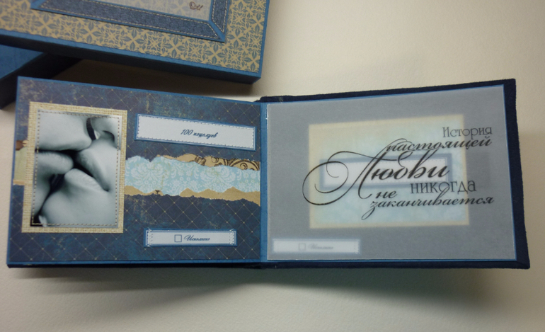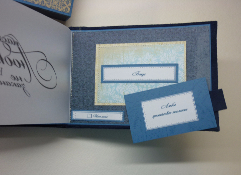 А я к Вам с очередной Чековой книжкой желаний на 13 желаний и 7 пожеланий. В этот раз в синих тонах.