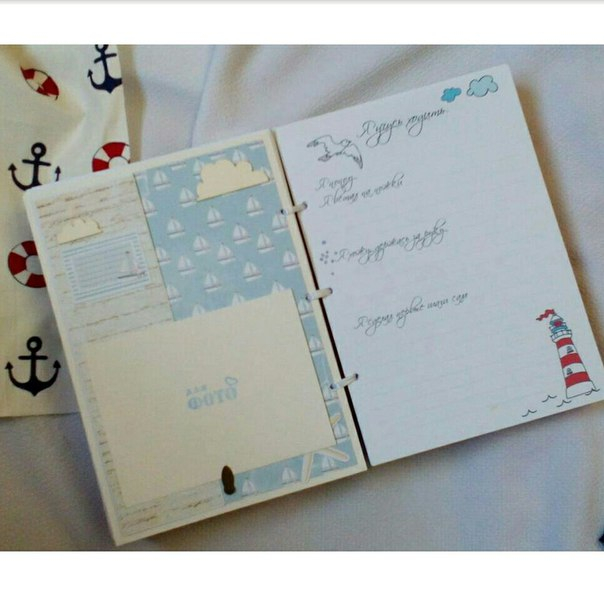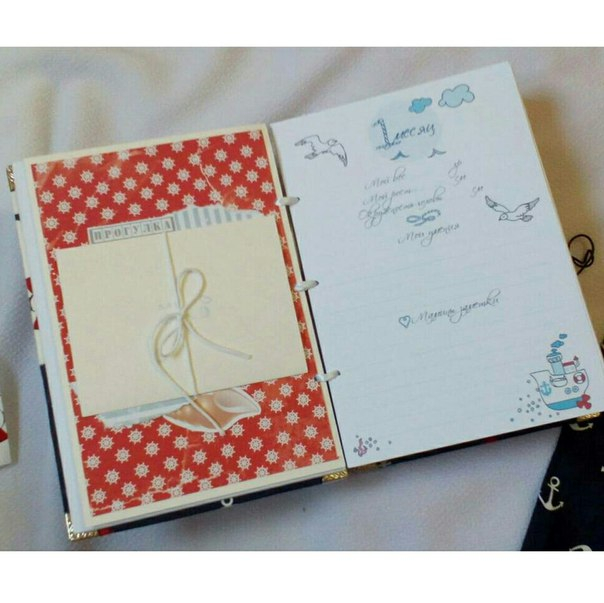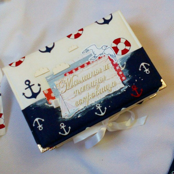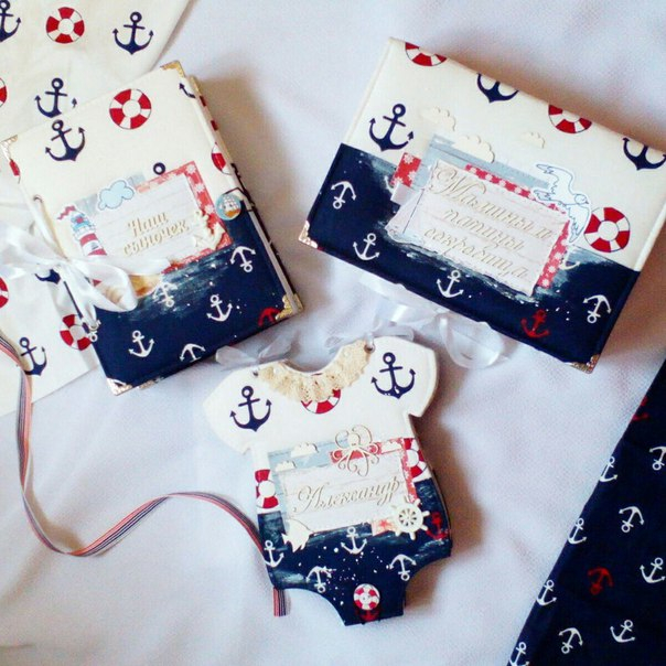 Альбомы ДетскиеУра!!! 14 ночей без сна не прошли даром! Наконец-то готов мой морской наборчик. Сделан на заказ. В наборе альбом на первый год жизни в форме бодика, шкатулка "мамины и папины сокровища" и мамин дневник для записи о малыше до 7 лет. Набор получился очень большим и тяжелым. Один мамин дневник чего весит.... Очень толстенький. Целых 6см толщиной. Внутри очень плотные странички, много разделителей для фото, и держатель для диска. Для меня он ооочень тяжелый. Бодик и беби-бук закрываются на пуговку и резинку, ленточные переплетики. Все выполнено с нуля и очень качественно! В целом, набор очень интересный. Много секретиков и интересных раскладушек для фотографий. В наличии нет. Для заказа подобного набора, прошу писать в личку!) всем удачного дня!!!