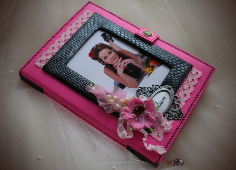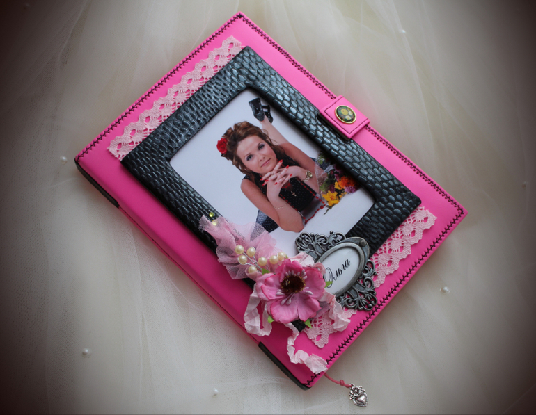 Ну и блокнот с личной фотографией заказчицы тоже покажу)) Внутри состаренные кофейные странички. Застежка на магните.