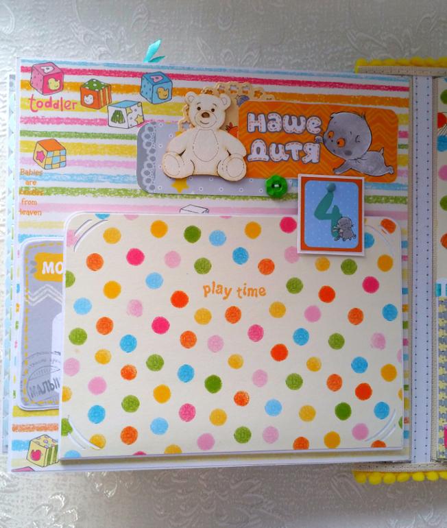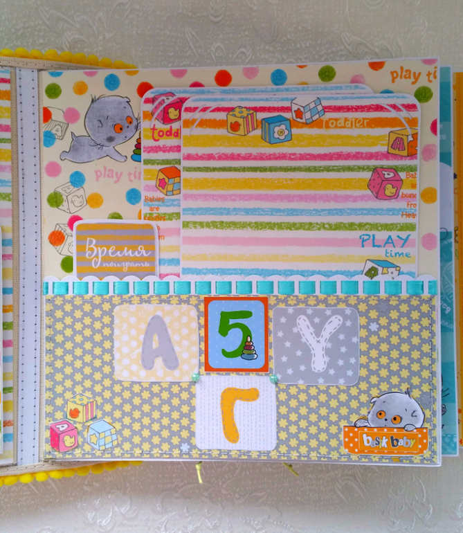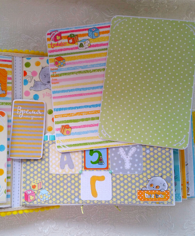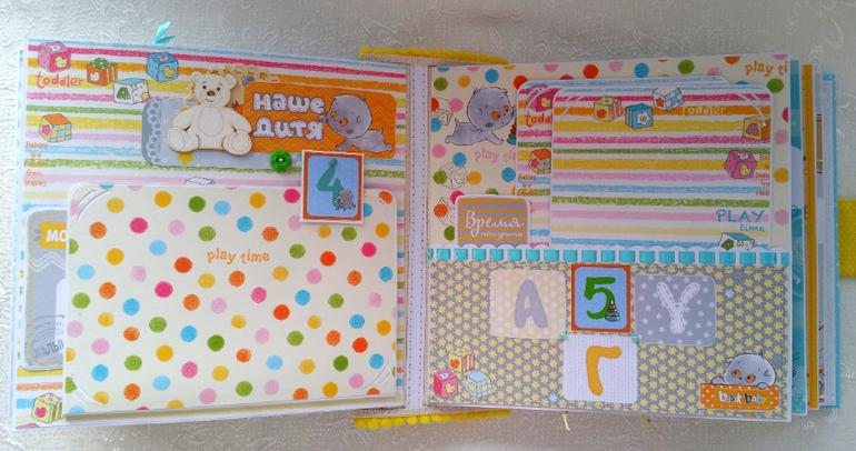 Альбомы ДетскиеВсем привет. Давно я уже тут ничего не показывала, все как то откладывала... И вот сегодня хочу показать вам альбом который я закончила делать 31 декабря!) Да, да в то время когда все крошили салаты и закуски готовили на новогодний стол я доделывала альбом.) Размер альбома 19*19 см, вмещается 60 фото размером 10*15. Тканевый переплет, в основе страничек 300 гр. картон, странички выполнены из скрапбумаги ScrapBerry's коллекция "Веселое детство". Видео обзор альбому можно посмотреть . Ну а дальше очень много фото: