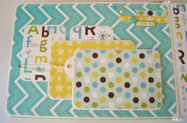 Так что работа над альбомами продвигалась очень медленно и крайне интересным способом - придумывала - когда кормила малышку, раскладку делала с Богданой в одной руке, клеила и строчила - по 5 минут набегу)) В общем весело!