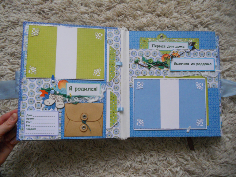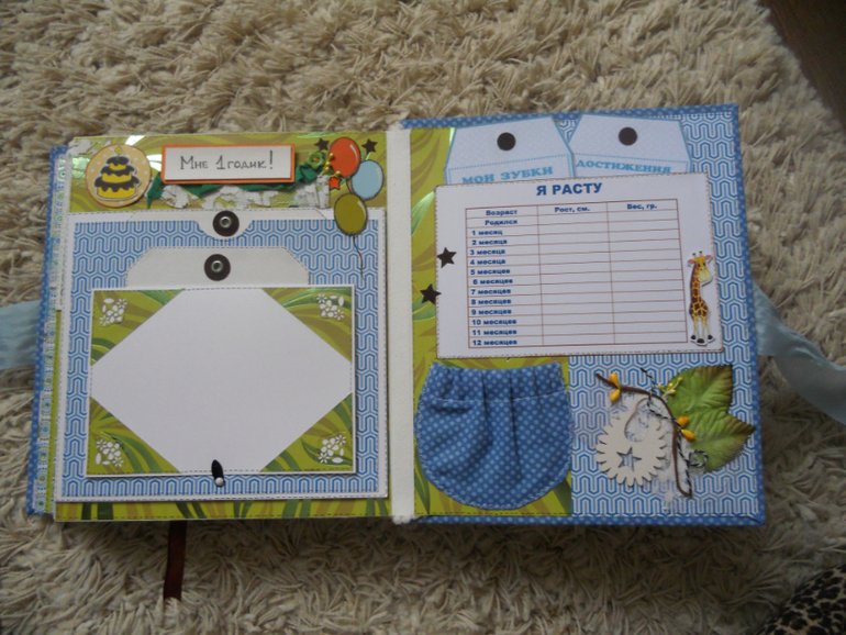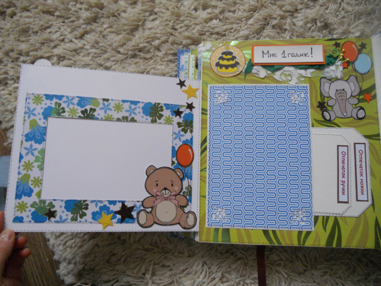 Альбомы ДетскиеФормат альбома 25х21. Вмещает более 60 фото различного формата. Есть конвертик для бирочки,карман для локона,а может и зубика,карточки для отпечатков ножек/ладошек, теги для маминых заметок о прорезывании зубиков,роста/веса малыша,его достижений. Альбом выполнен из красочной,яркой бумаги с фольгированием.